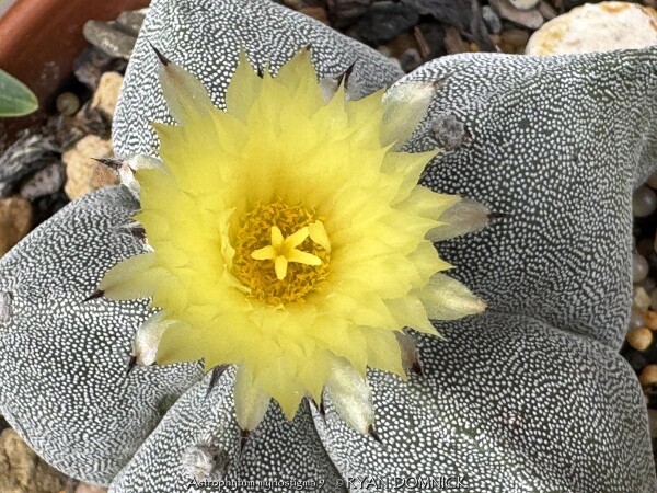 ***Description for this plant available with future update!*** Astrophytum myriostigma is also known as Bishop's Cap Cactus (Tropical)>>>>> Cacti are known for their spines, unusual shapes and beautiful flowers. Both succulents and cacti store water in their fleshy tissues. And can survive long periods without water. Cacti and succulents are usually grown as a deck/patio plant or house plant in Kansas. Grow in full sun with little to no extra watering except that which comes from rainfall. Generally, plants may be brought out in Late May through Early October in our zone 6a Lawrence, KS climate. To play is safe, potted plants are best moved in before autumn leaves begin to drop and before night temperatures get below 45 degrees F. It is very important to avoid the combination of wet and cold. Move to a bright interior window over the winter with little to no watering and keep above 50 degrees F. As a winter house plant, it will look presentable all winter long with little to no waterings. As a permanent house plant, provide bright light and allow the soil to dry completely between waterings and you will get many years of carefree enjoyment. Plants grown permanently indoors may eventually begin to elongate stretching for light and lose their spine color. It can be hard to reproduce the intense UV sunlight they need when growing indoors so moving outside for the summer is best. Generally if moving outside for the summer, allow 1-2 weeks of part shade or morning sun before placing in full sun. Plants with time to acclimate will thrive in full sun but be careful not to rush it or sunburning may occur. Repotting may or may not be needed depending on how large you want the plant to grow; plants can continue to grow taller and tolerate extremely root-bound pots but may need wind bracing. If repotting, make sure to use a sharp draining low organic cactus mix with plenty of sand and perlite but avoid peat moss. The “soil” most commercial cacti are potted in to too peaty and light weight. This soil becomes hydrophobic and shrinks after becoming bone dry and difficult to re wet again. Cacti never grow in peat-based soils in nature; this “Soil” is only good for shipping because of the light weight. Potted plants are very low maintenance but watch for scale and mealybugs that may hide beneath the cover of spines. The best pest removal approach is to periodically wash the cactus off. Achieve this with a water nozzle or hose breaker turned mostly off to increase the pressure from the blast of water. This high-pressured water kills the pests without damaging the thick cactus skin. Here are some little-known or rare factoids about cacti: 1. The "spines" are actually modified leaves filled with sap at first, then quickly drying out to form the spines! 2. Many cacti have bright colored flowers that mainly attract bees, while some tubular flowering types attract hummingbirds and bats. 3. Late on the evolutionary timeline, cacti fossils are rare to non-existent. Cacti are native almost exclusively to the Americas, while succulents can include a much larger plant palette be from any dry area in the world. 4. Some cactus plants have been known to survive more than 2 years without water. 5. Some cacti first evolved in a dry climate that later became wetter again. For example: several jungle species live as epiphytes in trees to achieve the fast drainage they need.