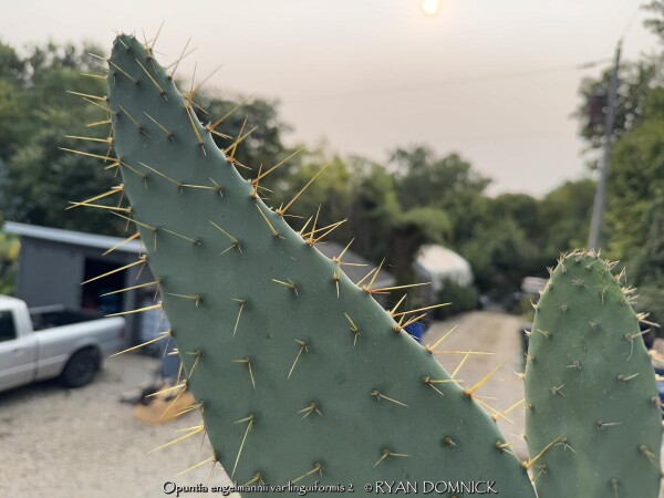 ***Description for this plant available with future update!***The yellow flowers, maroon long lasting fruits, and upright growth habit of this cactus (Opuntia engelmannii var. linguiformis) create a unique addition to the desert garden. The pads are sparsely spined, light green, and hardy to about -5 degrees F. Native to arid soils in Texas and Oklahoma, this cactus has a place as one of the few upright cacti that can handle extreme cold. In fact, I have seen this species growing a in Lawrence, KS in desert gardens along a south wall of a house. With well drained soils and proper micro-climate, this cactus can handle our extreme cold and excess rainfall of Eastern Kansas with excellent drainage.