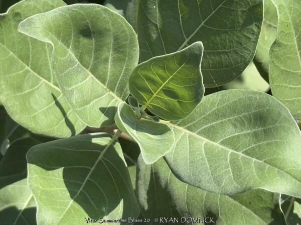 Description from plant breeder, Plant Nouveau: "This new hybrid vitex breaks all of the rules! Selected from a batch of vitex crosses made by former V.P. of Horticulture, Kris Jarantoski of the Chicago Botanic Garden, Summertime Blues has a rounded habit with exceptionally large individual flowers held on black stems. Just imagine a vitex with improved hardiness, that flowers most of the summer and can be used as a shrub…and you have Summertime Blues! Undisputedly an improved selection, Summertime Blues offers multi-season interest for gardens from California to Chicago and even in the deep south. Extreme drought tolerance, a more manageable size, and sterile flowers make the perfect combination for this work horse, easy-to-care-for shrub. Note: This plant has produced no viable seed for the past 15 years and therefore should not have the invasive tendencies of Vitex rotundifolia, which is one of its parents." Vitex agnus castus x rotundifolia ‘Helen Froehlich’ PP31660, Summertime Blues™ is quite a mouthful to say but well worth it in the landscape. We are testing the claims that it may be winter hardy as a shrub with less die back in our Lawrence, KS zone 6a display garden. This is the first year of texting...2024! We will keep you posted.