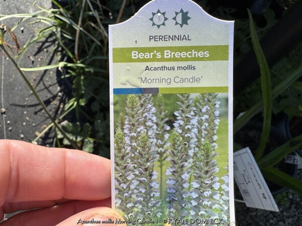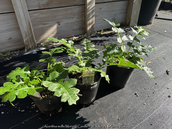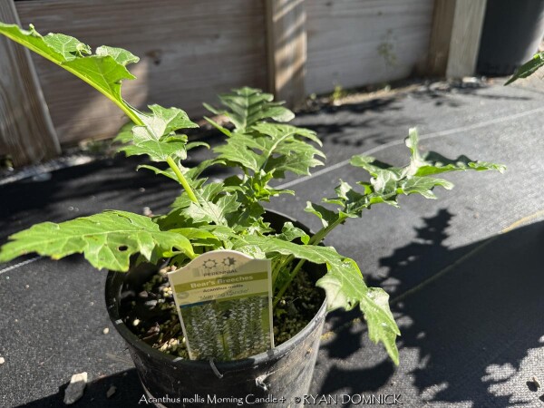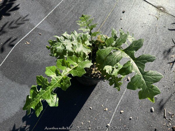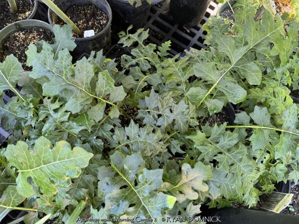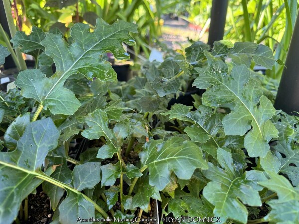 Mornings Candle Bear's Breeches / Acanthus is a clump-forming perennial that is grown as much for its attractive dark green foliage as for its architecturally bold flower spikes. It is native to the Mediterranean region. Flowers are creamy white (sometimes pinkish) and snapdragon-like. Foliage is mostly evergreen in warm winter climates, but plants lose their leaves when winter temperatures dip below 20°F. Foliage is usually persisting until mid-early December in Kansas. If low temperatures hit -10 degrees F, it may kill an un-mulched plant; protect any zone 6 perennial with thick layer of mulch. Established plants survived -16 degrees F and a week of single digit highs in February, 2021. Acanthus may be grown a potted patio plant for full to part shade. Grown in a raised pot, they are hardy to about 15-20° so you may be able to miss the first few frosts when moving them in for the winter. Before extreme cold, overwinter in a dark garage or basement with monthly watering to encourage dormancy. Alternatively, it can maintain growing in a bright window as a houseplant. Either way, they will hold up very well in the winter and maintain their attractive foliage. In spring, just cut off dead foliage and place back out in April or May with a time-release fertilizer. 'Morning's Candle' was likely the result of breeding from Acanthus spinosus and Acanthus mollis. This improved cultivar is considered an extremely adaptable and hardy selection among the Bear's breech species, combining the best characteristics of both parents.