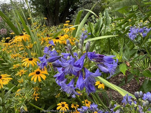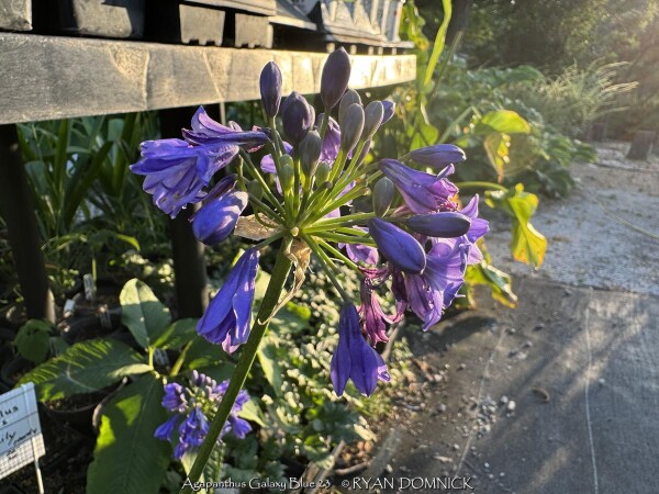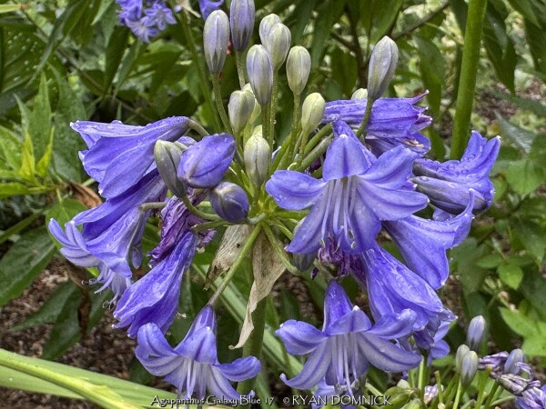 Agapanthus are typically grown in warmer zones, but Walters Gardens has introduced a collection of vigorous varieties that are hardy to zone 6! Agapanthus 'Galaxy Blue' was originally tested in Michigan and overwintered for the more than 7 years. They also survived the Kansas cold blast of February 2021 (temperatures reaching -16 degrees F) with no problems. They're out of this world with globular clusters that are produced on tall stems over large, rounded clumps of foliage. 4" clusters of dark blue flowers are produced and rebloom occurs if watered regularly in the summer. True blue is an especially rare flower color in the garden. Foliage resembles daylilies and turns yellow in the fall. To be safe with any "hardy tropical", apply a heavy 3-4"mulch layer for the first few years.
