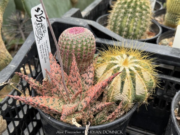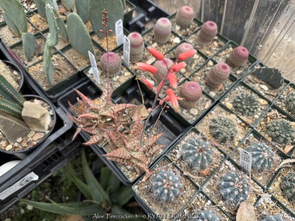 ***Description for this plant available with future update!*** Aloe ‘Firecracker’ is also known as Firecracker Aloe (Tropical)>>>>> Cacti are known for their spines, unusual shapes and beautiful flowers. Both succulents and cacti store water in their fleshy tissues. And can survive long periods without water. Cacti and succulents are usually grown as a deck/patio plant or house plant in Kansas. Grow in full sun with little to no extra watering except that which comes from rainfall. Generally, plants may be brought out in Late May through Early October in our zone 6a Lawrence, KS climate. To play is safe, potted plants are best moved in before autumn leaves begin to drop and before night temperatures get below 45 degrees F. It is very important to avoid the combination of wet and cold. Move to a bright interior window over the winter with little to no watering and keep above 50 degrees F. As a winter house plant, it will look presentable all winter long with little to no waterings. As a permanent house plant, provide bright light and allow the soil to dry completely between waterings and you will get many years of carefree enjoyment. Plants grown permanently indoors may eventually begin to elongate stretching for light and lose their spine color. It can be hard to reproduce the intense UV sunlight they need when growing indoors so moving outside for the summer is best. Generally if moving outside for the summer, allow 1-2 weeks of part shade or morning sun before placing in full sun. Plants with time to acclimate will thrive in full sun but be careful not to rush it or sunburning may occur. Repotting may or may not be needed depending on how large you want the plant to grow; plants can continue to grow taller and tolerate extremely root-bound pots but may need wind bracing. If repotting, make sure to use a sharp draining low organic cactus mix with plenty of sand and perlite but avoid peat moss. The “soil” most commercial cacti are potted in to too peaty and light weight. This soil becomes hydrophobic and shrinks after becoming bone dry and difficult to re wet again. Cacti never grow in peat-based soils in nature; this “Soil” is only good for shipping because of the light weight. Potted plants are very low maintenance but watch for scale and mealybugs that may hide beneath the cover of spines. The best pest removal approach is to periodically wash the cactus off. Achieve this with a water nozzle or hose breaker turned mostly off to increase the pressure from the blast of water. This high-pressured water kills the pests without damaging the thick cactus skin. Here are some little-known or rare factoids about cacti: 1. The "spines" are actually modified leaves filled with sap at first, then quickly drying out to form the spines! 2. Many cacti have bright colored flowers that mainly attract bees, while some tubular flowering types attract hummingbirds and bats. 3. Late on the evolutionary timeline, cacti fossils are rare to non-existent. Cacti are native almost exclusively to the Americas, while succulents can include a much larger plant palette be from any dry area in the world. 4. Some cactus plants have been known to survive more than 2 years without water. 5. Some cacti first evolved in a dry climate that later became wetter again. For example: several jungle species live as epiphytes in trees to achieve the fast drainage they need.