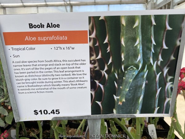 ***Description for this plant available with future update!*** Aloe suprafoliata is also known as Book Aloe (Tropical)>>>>> Cacti are known for their spines, unusual shapes and beautiful flowers. Both succulents and cacti store water in their fleshy tissues. And can survive long periods without water. Cacti and succulents are usually grown as a deck/patio plant or house plant in Kansas. Grow in full sun with little to no extra watering except that which comes from rainfall. Generally, plants may be brought out in Late May through Early October in our zone 6a Lawrence, KS climate. To play is safe, potted plants are best moved in before autumn leaves begin to drop and before night temperatures get below 45 degrees F. It is very important to avoid the combination of wet and cold. Move to a bright interior window over the winter with little to no watering and keep above 50 degrees F. As a winter house plant, it will look presentable all winter long with little to no waterings. As a permanent house plant, provide bright light and allow the soil to dry completely between waterings and you will get many years of carefree enjoyment. Plants grown permanently indoors may eventually begin to elongate stretching for light and lose their spine color. It can be hard to reproduce the intense UV sunlight they need when growing indoors so moving outside for the summer is best. Generally if moving outside for the summer, allow 1-2 weeks of part shade or morning sun before placing in full sun. Plants with time to acclimate will thrive in full sun but be careful not to rush it or sunburning may occur. Repotting may or may not be needed depending on how large you want the plant to grow; plants can continue to grow taller and tolerate extremely root-bound pots but may need wind bracing. If repotting, make sure to use a sharp draining low organic cactus mix with plenty of sand and perlite but avoid peat moss. The “soil” most commercial cacti are potted in to too peaty and light weight. This soil becomes hydrophobic and shrinks after becoming bone dry and difficult to re wet again. Cacti never grow in peat-based soils in nature; this “Soil” is only good for shipping because of the light weight. Potted plants are very low maintenance but watch for scale and mealybugs that may hide beneath the cover of spines. The best pest removal approach is to periodically wash the cactus off. Achieve this with a water nozzle or hose breaker turned mostly off to increase the pressure from the blast of water. This high-pressured water kills the pests without damaging the thick cactus skin. Here are some little-known or rare factoids about cacti: 1. The "spines" are actually modified leaves filled with sap at first, then quickly drying out to form the spines! 2. Many cacti have bright colored flowers that mainly attract bees, while some tubular flowering types attract hummingbirds and bats. 3. Late on the evolutionary timeline, cacti fossils are rare to non-existent. Cacti are native almost exclusively to the Americas, while succulents can include a much larger plant palette be from any dry area in the world. 4. Some cactus plants have been known to survive more than 2 years without water. 5. Some cacti first evolved in a dry climate that later became wetter again. For example: several jungle species live as epiphytes in trees to achieve the fast drainage they need.