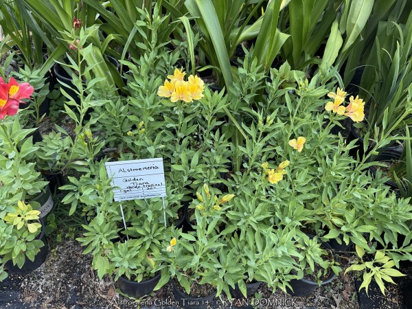 ***Description for this hardy tropical available with future update!*** Alstroemeria 'Golden Tiara' is also known as Golden Tiara Hardy Alstroemeria >>>>>>>>>>> Plant delights nursery says "Alstroemeria 'Golden Tiara' is a 2022 Plant Delights/JLBG introduction of a gold-flowered sport of Alstroemeria 'Koice' (Inca Ice) that we found here. We sent plants to Michigan's Walters Gardens for testing, where it has thrived in their Zone 5b field trials. Alstroemeria 'Golden Tiara' forms a 5' wide, dense patch of upright stalks, which begin flowering in early June and continues well into fall, slowing somewhat in the heat of midsummer. The first round of stalks are 2' tall, but the stalks produced later in the summer and fall, top out at 45" tall. The flowers are bright golden yellow with an orange exterior throat. This is a stunning color addition to the line of very hardy princess lilies."