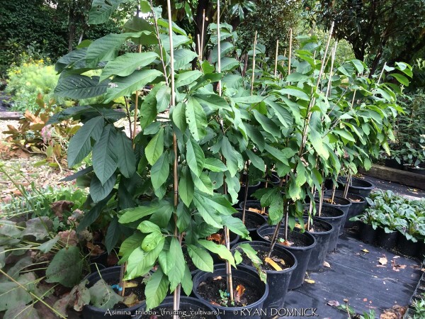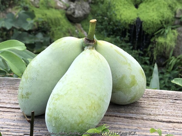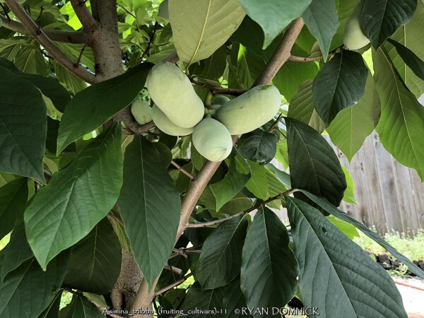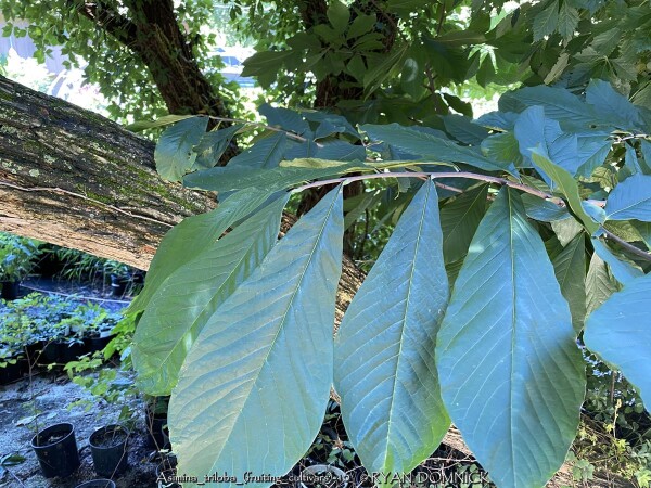 Paw Paw (Asimina triloba) is a tropical looking native understory fruit tree with large green leaves and delicious fruits. Flowers are born on old wood in the early spring and the maroon color is common of flowers meant to attract flies for pollination. Foliage is up to 12 inches long and turns a brilliant yellow in autumn for a couple weeks before falling. If cross pollination occurs, delicious fruits are produced in small clusters. The texture is custard like and taste is a mix between banana, mango, and hint of pineapple. Fruit is very fragile upon ripening and will fall to the ground and splat or be quickly devoured by animals. It is suggested that you put fruit nets around the clusters of fruit or harvest a few days earlier and allow to ripen inside. Fruit is rarely commercially available due to its fragility and short shelf-life. Cleaned fruit may be peeled frozen with seed intact: they can be picked out much easier when thawed out again Paw Paw may be eaten fresh, baked into desserts, or made into ice cream. Paw Paw is native to a large geographical area over eastern United States including Kansas. In the wild, Paw Paw grows in moist rich forest valleys in full to part shade. Best fruiting specimens can also be found on the edge of woodland or clearing in rich soil. Paw Paw tree colonies slowly spread by rhizomes and seem to occupy the forest understory sometimes for decades or centuries waiting for an opening to allow sunlight in. If a large canopy tree (such as an oak) dies or wind storm rolls through clearing a patch, new sunlight and an opening in the canopy occurs paving the way for sexual reproduction to take place (fruits) Paw Paw is somewhat tolerant of poorly drained soil's including clay but growth will be much slower. Interestingly, Paw Paws will tolerate and even need full sun when older to produce fruit. However, young saplings will quickly die in full sun from leaf burn and drought stress. If a tree is at least 4 to 6 tall and is planted in rich soil and full sun with regular irrigation, it will probably be fine. With these growing conditions, trees may grow at a median growth rate instead of slow, putting up 1 to 2 feet of new growth per year. If you have the right conditions for a Paw Paw tree, it should definitely be a part of your landscape whether you are growing for fruit production or not. There are dozens on improved cultivars available now days. In our Lawrence, KS display gardens, we are trialing several of these improved fruiting cultivars from Forrest Keeling Nursery in Missouri. Asimina triloba 'Potomac' has large, fleshy fruits with sweet, rich flavor and firm, smooth texture. This tree has a more upright habit that other pawpaw varieties.