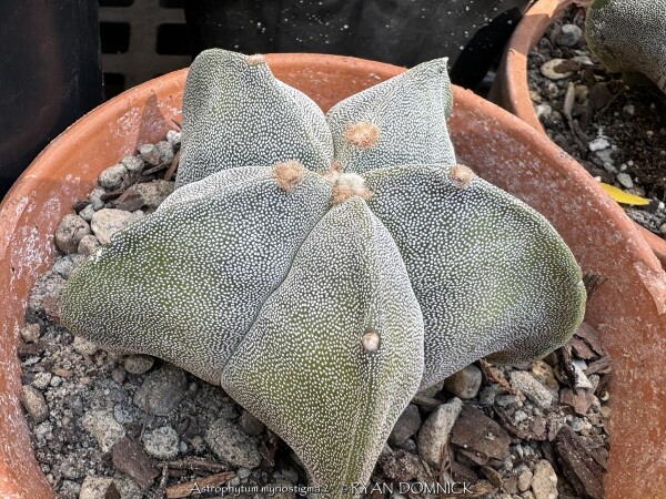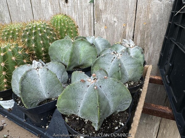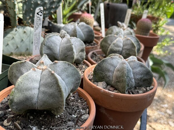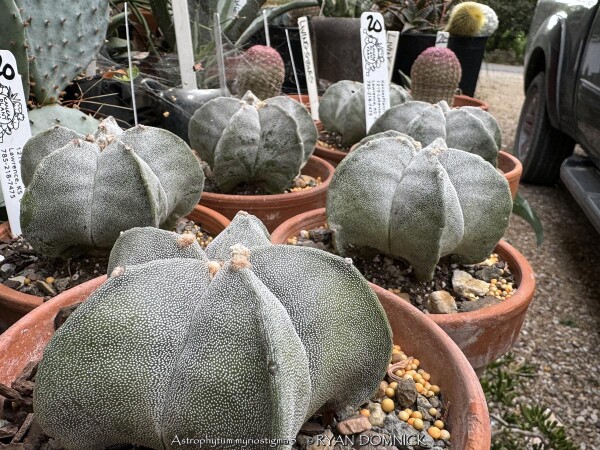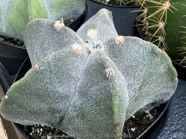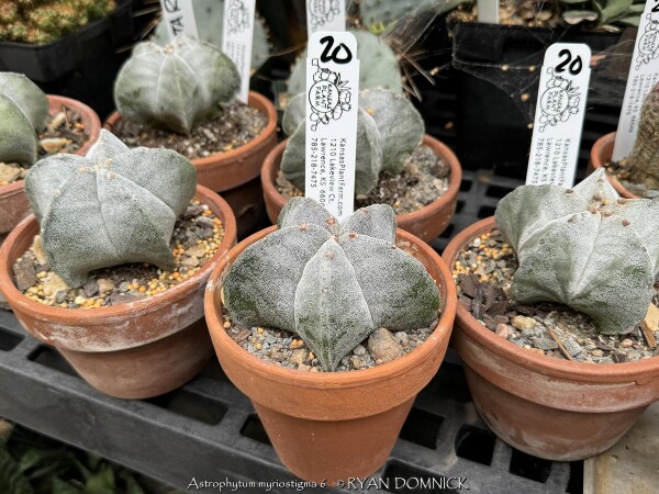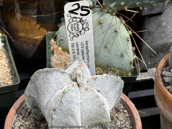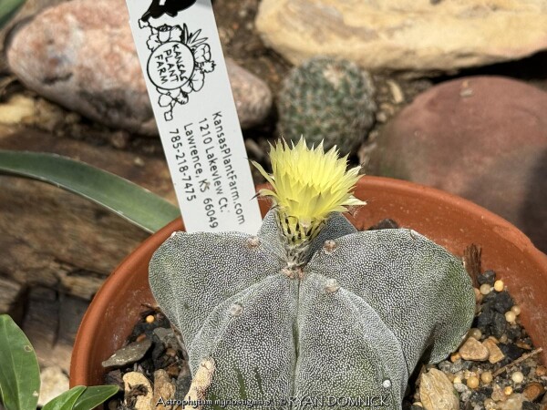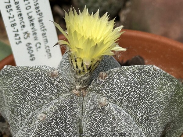***Description for this plant available with future update!*** Astrophytum myriostigma is also known as Bishop's Cap Cactus (Tropical)>>>>> Cacti are known for their spines, unusual shapes and beautiful flowers. Both succulents and cacti store water in their fleshy tissues. And can survive long periods without water. Cacti and succulents are usually grown as a deck/patio plant or house plant in Kansas. Grow in full sun with little to no extra watering except that which comes from rainfall. Generally, plants may be brought out in Late May through Early October in our zone 6a Lawrence, KS climate. To play is safe, potted plants are best moved in before autumn leaves begin to drop and before night temperatures get below 45 degrees F. It is very important to avoid the combination of wet and cold. Move to a bright interior window over the winter with little to no watering and keep above 50 degrees F. As a winter house plant, it will look presentable all winter long with little to no waterings. As a permanent house plant, provide bright light and allow the soil to dry completely between waterings and you will get many years of carefree enjoyment. Plants grown permanently indoors may eventually begin to elongate stretching for light and lose their spine color. It can be hard to reproduce the intense UV sunlight they need when growing indoors so moving outside for the summer is best. Generally if moving outside for the summer, allow 1-2 weeks of part shade or morning sun before placing in full sun. Plants with time to acclimate will thrive in full sun but be careful not to rush it or sunburning may occur. Repotting may or may not be needed depending on how large you want the plant to grow; plants can continue to grow taller and tolerate extremely root-bound pots but may need wind bracing. If repotting, make sure to use a sharp draining low organic cactus mix with plenty of sand and perlite but avoid peat moss. The “soil” most commercial cacti are potted in to too peaty and light weight. This soil becomes hydrophobic and shrinks after becoming bone dry and difficult to re wet again. Cacti never grow in peat-based soils in nature; this “Soil” is only good for shipping because of the light weight. Potted plants are very low maintenance but watch for scale and mealybugs that may hide beneath the cover of spines. The best pest removal approach is to periodically wash the cactus off. Achieve this with a water nozzle or hose breaker turned mostly off to increase the pressure from the blast of water. This high-pressured water kills the pests without damaging the thick cactus skin. Here are some little-known or rare factoids about cacti: 1. The "spines" are actually modified leaves filled with sap at first, then quickly drying out to form the spines! 2. Many cacti have bright colored flowers that mainly attract bees, while some tubular flowering types attract hummingbirds and bats. 3. Late on the evolutionary timeline, cacti fossils are rare to non-existent. Cacti are native almost exclusively to the Americas, while succulents can include a much larger plant palette be from any dry area in the world. 4. Some cactus plants have been known to survive more than 2 years without water. 5. Some cacti first evolved in a dry climate that later became wetter again. For example: several jungle species live as epiphytes in trees to achieve the fast drainage they need.