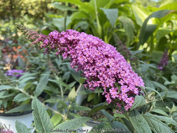 Butterfly Bush (Buddleia) are workhorses in the pollinator garden. Flower panicles come in a variety of colors mostly including shades of lavender, magenta, violet, pink, and white. Most Butterfly Bushes bloom on new wood so trimming off winter kill or complete rejuvenation will not affect flowering. In fact, flowering is often bigger and bolder from new water sprout growth when trimmed to the ground each year. Most Butterfly Bushes in zone 6 are maintained this way. Foliage is typically an attractive greenish-gray to mint green and persists into the fall until hard freezes occur. Use in the landscape in small or large groupings for its amazing flower power! Plants grow best in full sun with medium to dry soils. Drought tolerance is high with established plants so extra watering is rarely needed in our East Kansas climate with 40 inches of rain per year. Obviously, Butterfly Bush attracts lots of butterflies. There has been some debate in recent years on whether to plant Butterfly Bush because it's a non-native plant. Being a native of China, it has no pest or disease problems here. It is invasive in some parts of the country but cold Kansas winters keep it and check and without any self-seeding problems here. If you are still worried about it, there are several sterile varieties to choose from. There have been many drastically improved cultivars in the last 10 years aiming to improve cold hardiness, bloom size, eliminate seeding, and improve growth habits.
