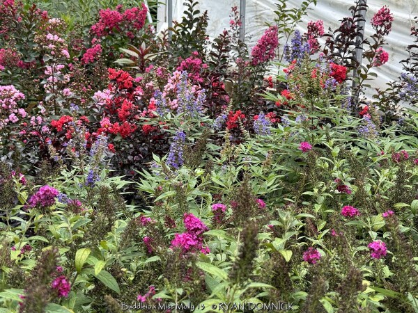 Butterfly Bush (Buddleia) are workhorses in the pollinator garden. Flower panicles come in a variety of colors mostly including shades of lavender, magenta, violet, pink, and white. Most Butterfly Bushes bloom on new wood so trimming off winter kill or complete rejuvenation will not affect flowering. In fact, flowering is often bigger and bolder from new water sprout growth when trimmed to the ground each year. Most Butterfly Bushes in zone 6 are maintained this way. Foliage is typically an attractive greenish-gray to mint green and persists into the fall until hard freezes occur. Use in the landscape in small or large groupings for its amazing flower power! Plants grow best in full sun with medium to dry soils. Drought tolerance is high with established plants so extra watering is rarely needed in our East Kansas climate with 40 inches of rain per year. Obviously, Butterfly Bush attracts lots of butterflies. There has been some debate in recent years on whether to plant Butterfly Bush because it's a non-native plant. Being a native of China, it has no pest or disease problems here. It is invasive in some parts of the country but cold Kansas winters keep it and check and without any self-seeding problems here. If you are still worried about it, there are several sterile varieties to choose from. There have been many drastically improved cultivars in the last 10 years aiming to improve cold hardiness, bloom size, eliminate seeding, and improve growth habits. Buddleia x 'Miss Molly' is a Proven Winners® plant With its intensely colored blooms and refined habit, 'Miss Molly' is the queen of the summer garden. Its fragrant flowers are the closest to red of any Butterfly Bush and appear for months every summer without deadheading. Unlike older varieties of Butterfly Bush, 'Miss Molly' reaches just 4-5' tall, so it's easy to work into any sunny landscape. This non-invasive variety thrives in hot climates. Butterflies and hummingbirds will find it as irresistible as you do! In Eastern Kansas, 'Miss Molly' has performs WELL for over 10 years with just about everything nature has to challenge it! Heat and drought are tolerated. Cold tolerance is no problem in our zone 6. If winter die-back occurs, cut back in March/April and flowers will occur on new growth in summer. No disease or pest problems. Combine with caryopteris and crapemyrtle to create a late season "all you can eat" buffet for pollinators! All Proven Winners® plants are legally propagated, healthy and vigorous, true to name, and tagged with color pictures and growing information.