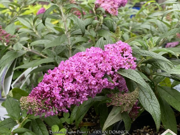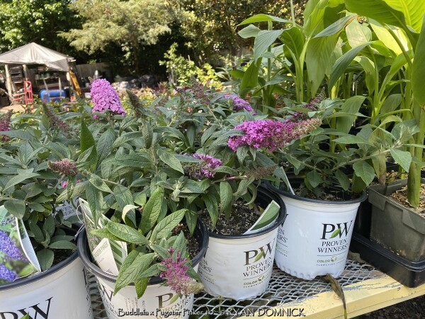 Butterfly Bush (Buddleia) are workhorses in the pollinator garden. Flower panicles come in a variety of colors mostly including shades of lavender, magenta, violet, pink, and white. Most Butterfly Bushes bloom on new wood so trimming off winter kill or complete rejuvenation will not affect flowering. In fact, flowering is often bigger and bolder from new water sprout growth when trimmed to the ground each year. Most Butterfly Bushes in zone 6 are maintained this way. Foliage is typically an attractive greenish-gray to mint green and persists into the fall until hard freezes occur. Use in the landscape in small or large groupings for its amazing flower power! Plants grow best in full sun with medium to dry soils. Drought tolerance is high with established plants so extra watering is rarely needed in our East Kansas climate with 40 inches of rain per year. Obviously, Butterfly Bush attracts lots of butterflies. There has been some debate in recent years on whether to plant Butterfly Bush because it's a non-native plant. Being a native of China, it has no pest or disease problems here. It is invasive in some parts of the country but cold Kansas winters keep it and check and without any self-seeding problems here. If you are still worried about it, there are several sterile varieties to choose from. There have been many drastically improved cultivars in the last 10 years aiming to improve cold hardiness, bloom size, eliminate seeding, and improve growth habits. Buddleia x 'Pugster Pinker' is the newest member of a unique series that offers full-sized flowers on dwarf plants. This compact Butterfly Bush reaches just 2-3' tall and wide but has the large, full flowers normally seen on a much larger plant. It blooms non-stop from early summer through frost with very rich pink flowers, each with a tiny bright orange eye in the center. Thanks to thick, sturdy stems, the Pugster® series offers vastly improved hardiness and winter survival over other types of dwarf Butterfly Bush. Thanks to its long-blooming habit, Pugster Butterfly Bushes add low-maintenance color to any sunny spot in your yard. The name "Pugster" comes from these plants' resemblance to a pug - short, stocky, and cute! In Eastern Kansas, this cultivar performs WELL with just about everything nature has to challenge it! Heat and drought are tolerated. Cold tolerance is no problem in our zone 6. If winter die-back occurs, cut back in March/April and flowers will occur on new growth this year. No disease or pest problems. Combine with caryopteris and crapemyrtle to create a late season "all you can eat" buffet for pollinators! All Proven Winners® plants are legally propagated, healthy and vigorous, true to name, and tagged with color pictures and growing information.