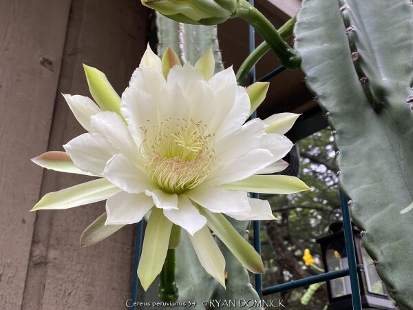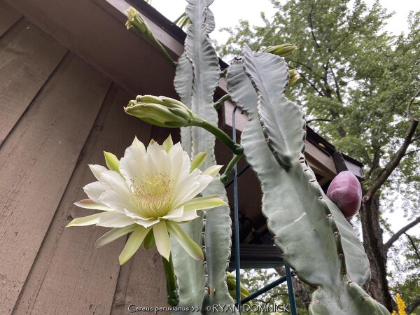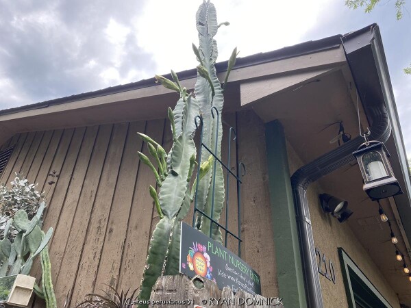 Grown for its beautiful bluish-green skin and showy night-blooming white flowers. Unlike most columnar cacti, Peruvian apple cactus (Cereus peruvianus) will bloom at a young age in a pot when about 3' tall or more. This cactus is usually grown as a patio or house plant in Kansas and blooms in late summer into early fall. Flowers only last one night! In the wild, this species is hardy to 20-25 degrees F for short periods of time. Grow in full sun with optional extra watering including that which comes from rainfall. Potted plants are very low maintenance. I have never seen any insect problems on this plant. Potted plants are capable of growing 10' tall or more in a small 7gal pot. Succulents are usually spineless and grown for their beautiful shapes, color and texture. Cacti are known for their spines, unusual shapes and beautiful flowers. Both succulents and cacti store water in their fleshy tissues. And can survive long periods without water. Cacti and succulents are usually grown as a deck/patio plant or house plant in Kansas. Grow in full sun with little to no extra watering except that which comes from rainfall. Generally, plants may be brought out in Late May through Early October in our zone 6a Lawrence, KS climate. To play is safe, potted plants are best moved in before autumn leaves begin to drop and before night temperatures get below 45 degrees F. It is very important to avoid the combination of wet and cold. Move to a bright interior window over the winter with little to no watering and keep above 50 degrees F. As a winter house plant, it will look presentable all winter long with little to no waterings. As a permanent house plant, provide bright light and allow the soil to dry completely between waterings and you will get many years of carefree enjoyment. Plants grown permanently indoors may eventually begin to elongate stretching for light and lose their spine color. It can be hard to reproduce the intense UV sunlight they need when growing indoors so moving outside for the summer is best. Generally if moving outside for the summer, allow 1-2 weeks of part shade or morning sun before placing in full sun. Plants with time to acclimate will thrive in full sun but be careful not to rush it or sunburning may occur. Repotting may or may not be needed depending on how large you want the plant to grow; plants can continue to grow taller and tolerate extremely root-bound pots but may need wind bracing. If repotting, make sure to use a sharp draining low organic cactus mix with plenty of sand and perlite but avoid peat moss. The “soil” most commercial cacti are potted in to too peaty and light weight. This soil becomes hydrophobic and shrinks after becoming bone dry and difficult to re wet again. Cacti never grow in peat-based soils in nature; this “Soil” is only good for shipping because of the light weight. Potted plants are very low maintenance but watch for scale and mealybugs that may hide beneath the cover of spines. The best pest removal approach is to periodically wash the cactus off. Achieve this with a water nozzle or hose breaker turned mostly off to increase the pressure from the blast of water. This high-pressured water kills the pests without damaging the thick cactus skin. Here are some little-known or rare factoids about cacti: 1. The "spines" are actually modified leaves filled with sap at first, then quickly drying out to form the spines! 2. Many cacti have bright colored flowers that mainly attract bees, while some tubular flowering types attract hummingbirds and bats. 3. Late on the evolutionary timeline, cacti fossils are rare to non-existent. Cacti are native almost exclusively to the Americas, while succulents can include a much larger plant palette be from any dry area in the world. 4. Some cactus plants have been known to survive more than 2 years without water. 5. Some cacti first evolved in a dry climate that later became wetter again. For example: several jungle species live as epiphytes in trees to achieve the fast drainage they need.