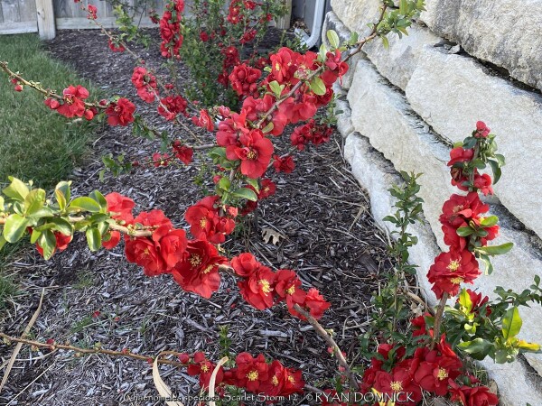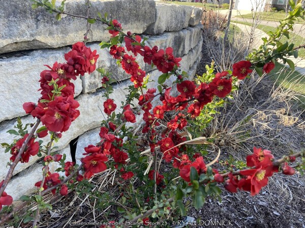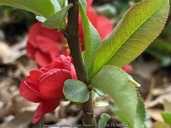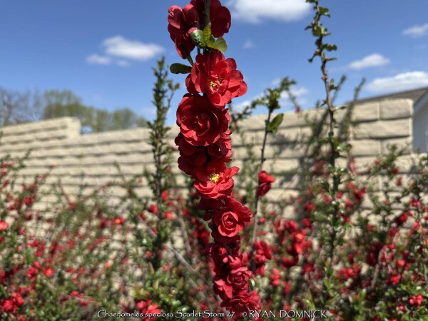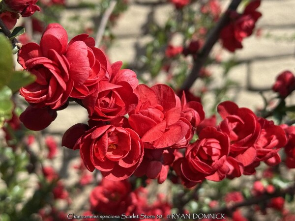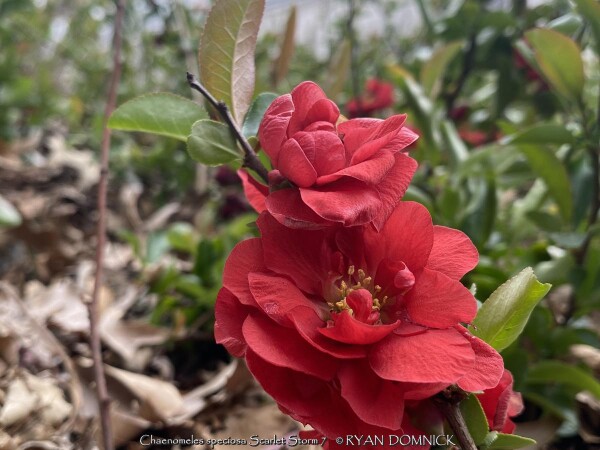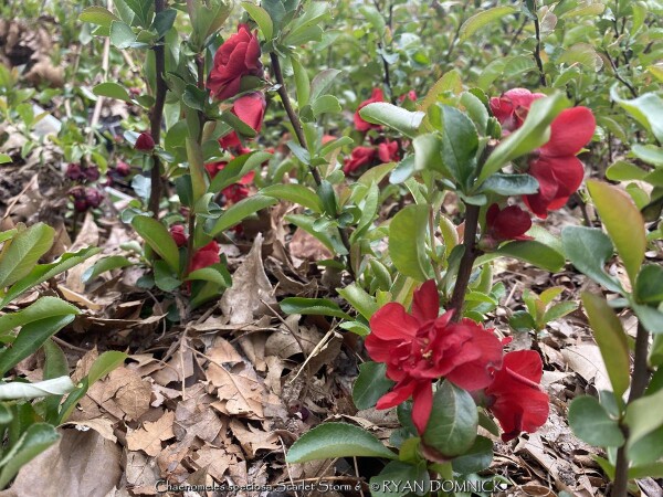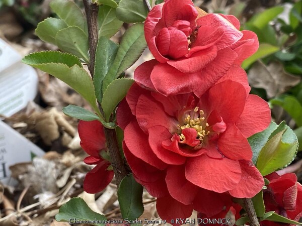 You'll do a double take when you see this quince that looks like a camellia. Double Take Scarlet Quince (Chaenomeles 'Double Take Scarlet') puts on a spectacular early spring display of large red, double flowers. The Double Take quinces are more than just pretty spring flowers: thornless and deer-resistant, they do not produce fruit, and once established, are drought-tolerant survivalists. Developed by Dr. Tom Ranney and his team at the Mountain Horticultural Crops Research & Extension Center in beautiful North Carolina, the Double Take quinces are sure to brighten spring landscapes across the United States. Uses Notes: Bright early spring flowers are great in mixed borders or cutting gardens. Also good for hedging and mass plantings. Maintenance Notes: Trim to shape after flowering. Apply a controlled release fertilizer in early spring. Formerly sold as Double Take 'Scarlet Storm' quince. In Eastern Kansas, this cultivar performs WELL with just about everything nature has to challenge it! Heat and drought are tolerated reasonably well but with some foliage decline by late summer and no fall color. This is made up for by the extremely reliable blooming season that fills up the month of April when many other plants are not in full swing yet. Cold tolerance or flower bud loss is no problem in our zone 6. No serious disease or pest problems. All Proven Winners® plants are legally propagated, healthy and vigorous, true to name, and tagged with color pictures and growing information.