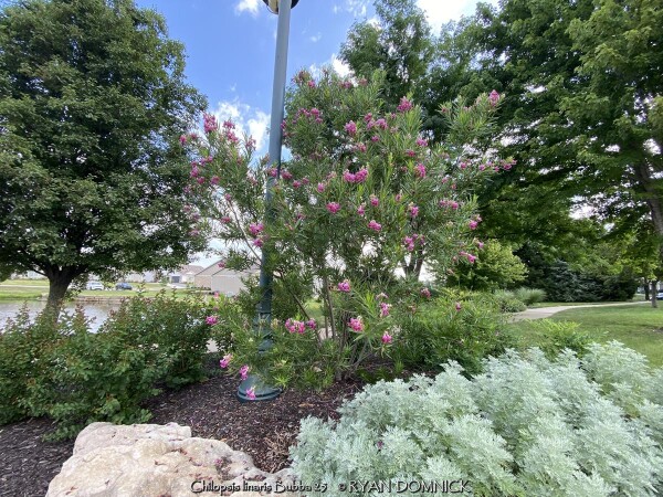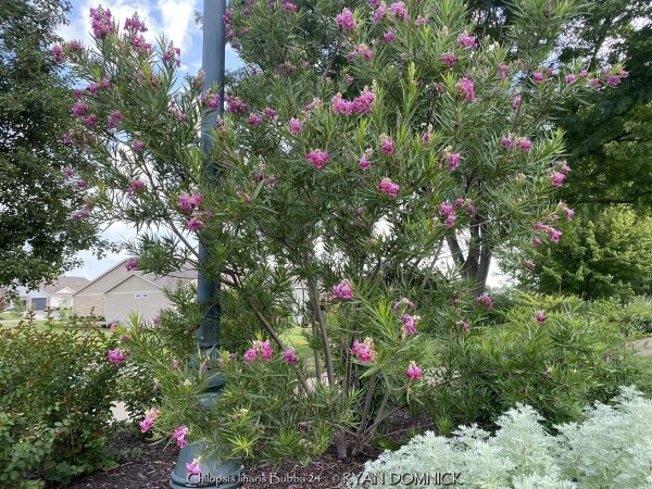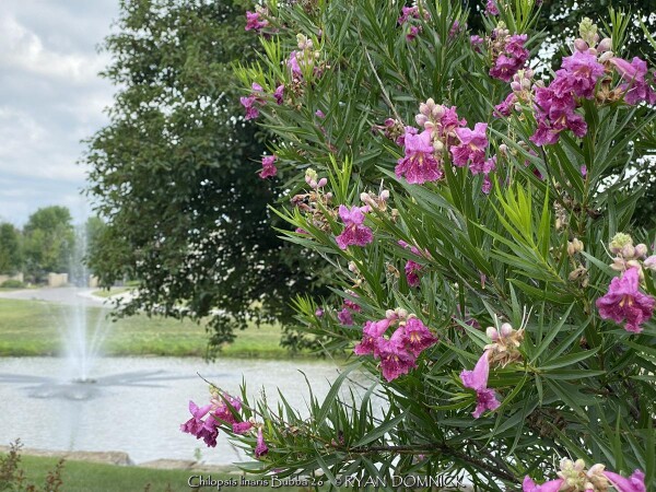 Desert Willow is a small open irregularly branched tree or large shrub with bright green narrow leaves (but not related to true willows) It features gorgeous pink, white and magenta snapdragon-like flowers with yellow throats. Blooming season is immensely long beginning in June continuing all summer until frost. Desert Willow grows in all soil types here in Kansas but prefers rich silty loam. It will not grow in excessively wet anaerobic soils though. Absolute full sun is needed for best growth to produce flowers and avoid spindlyness. In the landscape, Desert Willow can be used as a specimen shrub or small tree. It handles hot west for south locations very well. It's native range covers most of the Southwest and western Texas along streams and riparian areas. Being surprisingly cold hardy here, Several Desert Willow cultivars can be found at the Denver Botanic Gardens in Denver CO (zone 5b) and at the Dyck Arboretum in Hesston, Kansas (zone 6b). Bubba Desert Willow (Chilopsis linearis 'Bubba') has been thriving in our display garden and other Lawrence, KS locations for over 15 years and has endured temperatures as low as a -18. During the most severe winters, winter kills it down to the ground. However, just like Crapemyrtle or Butterfly Bush, Desert Willow blooms on new wood and at a young age with blooms even occurring on 3 foot tall nursery plants. Water sprout regrowth from established landscape plants is rapid with heights reaching 5-6'. These blooms are more numerous and larger than normal, especially with a handful of time-release fertilized applied in the early spring. Bubba Magenta Desert Willow (Chilopsis linearis 'Bubba') is a vigorous, fast-growing upright selection of desert willow that originated in Texas. Compared to other selections it has a strong vertical form and is less shrubby. It also has glossy, darker green, more lush foliage than other desert willows.