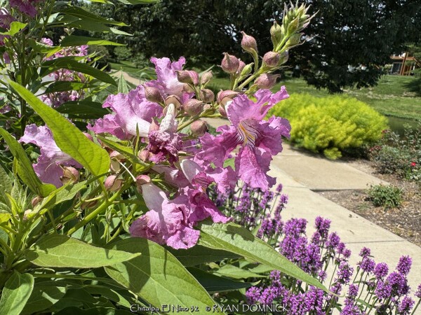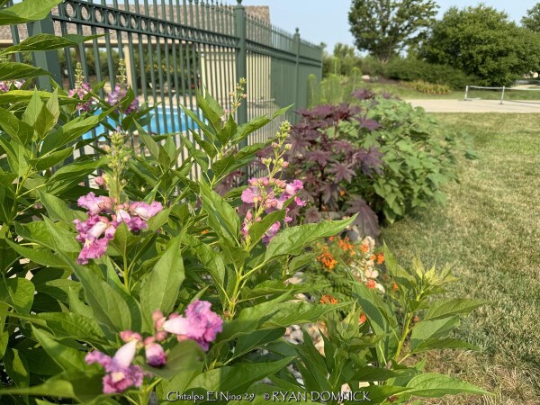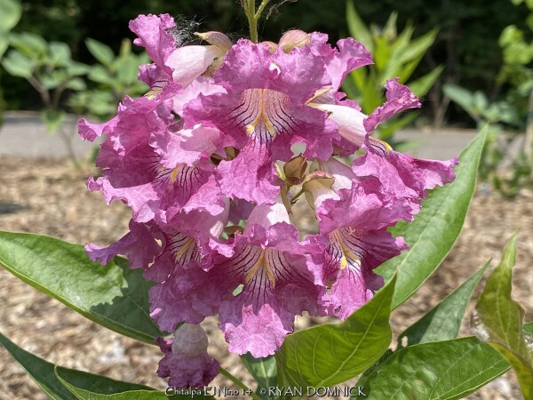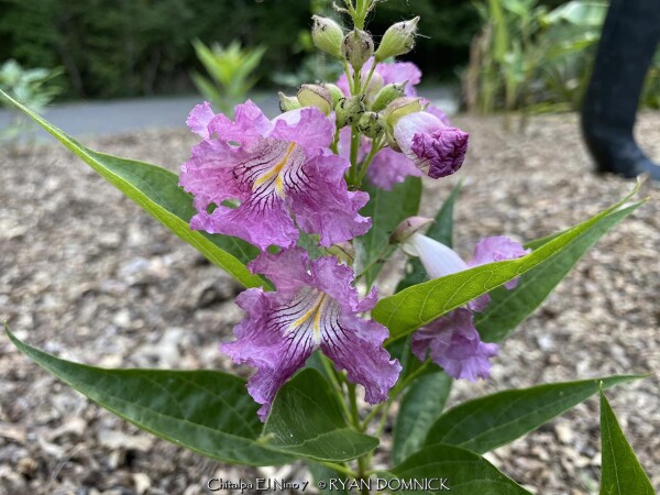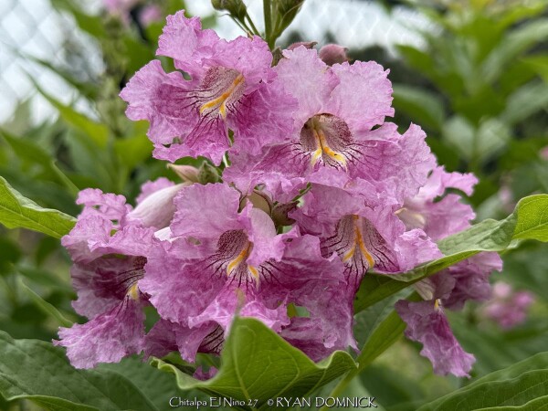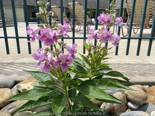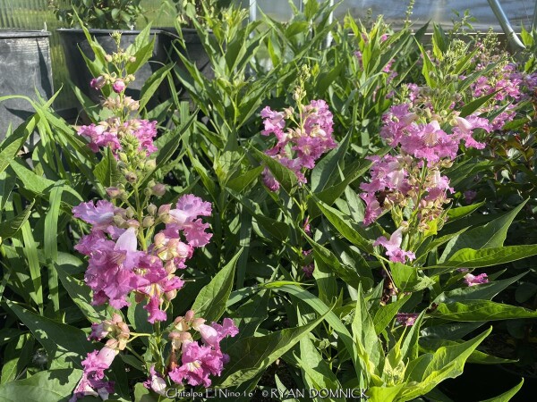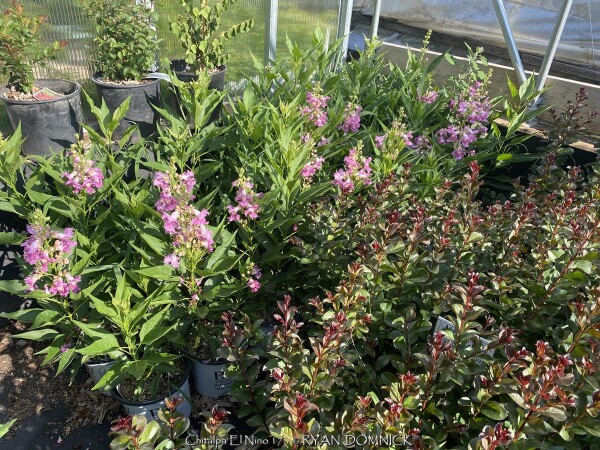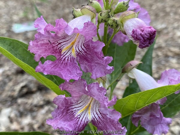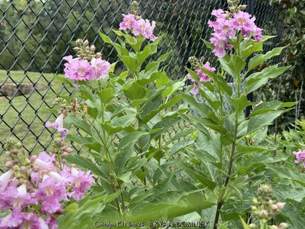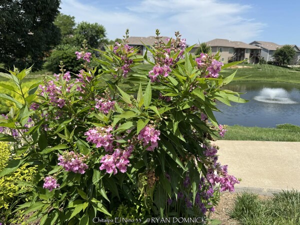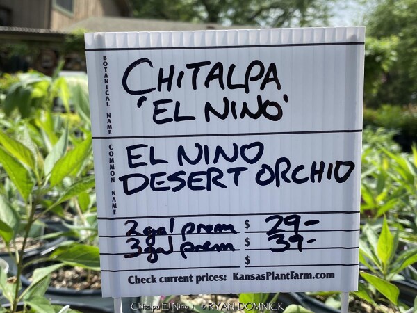 ***Description for this hardy tropical available with future update!*** Chitalpa 'El Nino' / x Chitalpa 'El Nino' is also known as El Nino Desert Orchid >>>>>>>>>>>Desert Willow is a small open irregularly branched tree or large shrub with bright green narrow leaves (but not related to true willows) It features gorgeous pink, white and magenta snapdragon-like flowers with yellow throats. Blooming season is immensely long beginning in June continuing all summer until frost. Desert Willow grows in all soil types here in Kansas but prefers rich silty loam. It will not grow in excessively wet anaerobic soils though. Absolute full sun is needed for best growth to produce flowers and avoid spindlyness. In the landscape, Desert Willow can be used as a specimen shrub or small tree. It handles hot west for south locations very well. It's native range covers most of the Southwest and western Texas along streams and riparian areas. Being surprisingly cold hardy here, Several Desert Willow cultivars can be found at the Denver Botanic Gardens in Denver CO (zone 5b) and at the Dyck Arboretum in Hesston, Kansas (zone 6b). Bubba Desert Willow (Chilopsis linearis 'Bubba') has been thriving in our display garden and other Lawrence, KS locations for over 15 years and has endured temperatures as low as a -18. During the most severe winters, winter kills it down to the ground. However, just like Crapemyrtle or Butterfly Bush, Desert Willow blooms on new wood and at a young age with blooms even occurring on 3 foot tall nursery plants. Water sprout regrowth from established landscape plants is rapid with heights reaching 5-6'. These blooms are more numerous and larger than normal, especially with a handful of time-release fertilized applied in the early spring.
