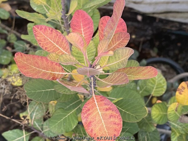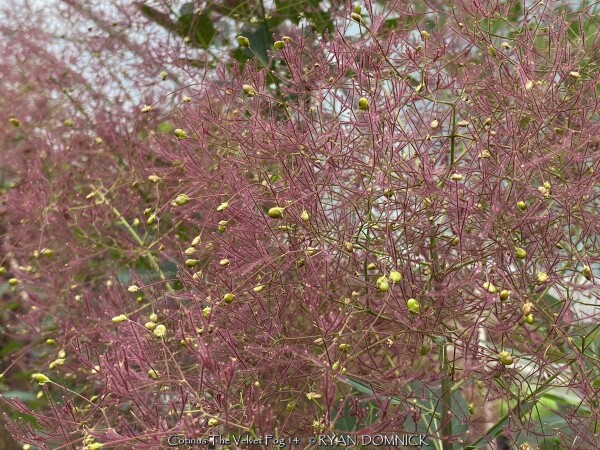 ***Shrub descriptions available with future update!*** Cotinus 'The Velvet Fog' is also known as The Velvet Fog Dwarf Purple Smokebush >>>>>>>>>>>>In the words of breeder Tim Wood - "It's got more smoke than a KISS concert!" (Cotinus 'The Velvet Fog') Very large pink plumes develop in mid-summer, covering the waxy blue-green foliage. It's a stunning color combination. The Velvet Fog smokebush (Cotinus 'The Velvet Fog') was selected for its outstanding flower production as well as its dense growth, providing a lusher look than conventional cotinus. Pruning will rarely be required but may be done in spring. It isn't technically the flowers that create the hazy, smoke-like effect this plant is so loved for - it's the seed pods that form after the flowers have faded. In Eastern Kansas, this cultivar performs WELL with just about everything nature has to challenge it! Heat and drought are preferred and need hot microclimate. Cold tolerance is no problem. Some leaf disease appears by late season from excessive rains and high humidity sometimes causing early defoliation. An important note about pruning: Do not attempt to rejuvinate an older tree/shrub in early fall. This will trick it into growing back rapidly to recover and them WHAM!.Arctic cold blast arrives killing any new growth not hardened off. This double sapps the tree for nutrients usually resulting in death by spring. All Proven Winners® plants are legally propagated, healthy and vigorous, true to name, and tagged with color pictures and growing information.