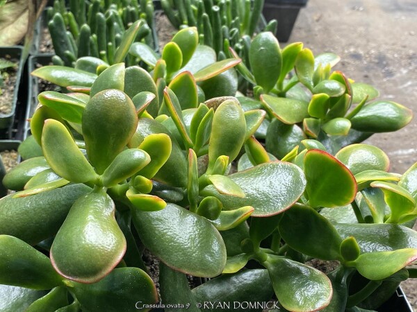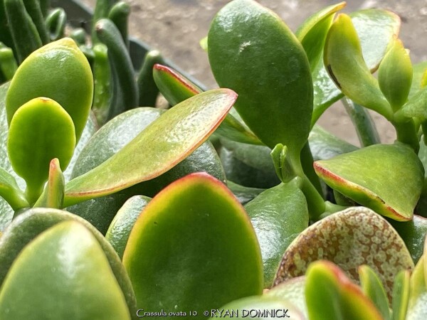 Jade Plant (Crassula ovata) is typically grown in warmer zones. Considered a tropical or succulent in Kansas and used as summer patio plants with white flowers and bright green foliage. Grow in full sun to part sun with optional extra watering during hot weather including that which comes from rainfall. Plants with plenty of time to acclimate will thrive in full sun but be careful not to rush it or sunburning will occur. Generally if moving outside for the summer, allow 2-3 weeks of part shade or morning sun before placing in full sun. Or just keep in part shade or under an overhang. Repotting may or may not be needed depending on how large you want the plant to grow; plants can continue to grow and tolerate extremely root-bound pots but may need wind bracing. Jade Plant can tolerate brief frosts but protect from temperatures below 29 degrees F for more than a few hours. As a permanent house plant, provide bright light and allow the soil to dry between waterings for many years of carefree enjoyment. Potted plants are very low maintenance but the combination of wet and cold will cause problems.