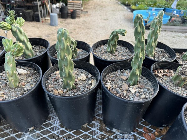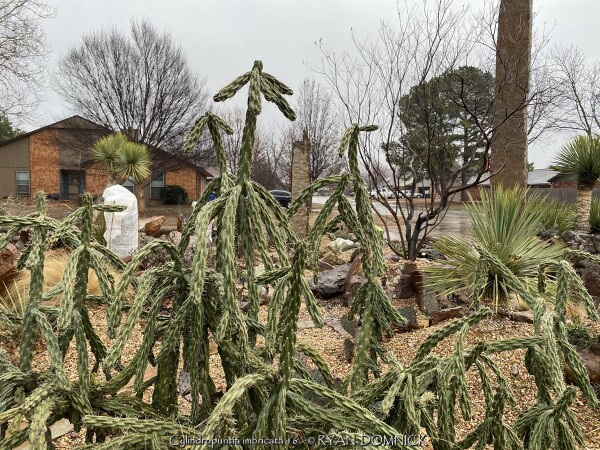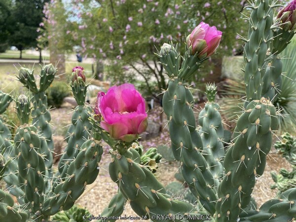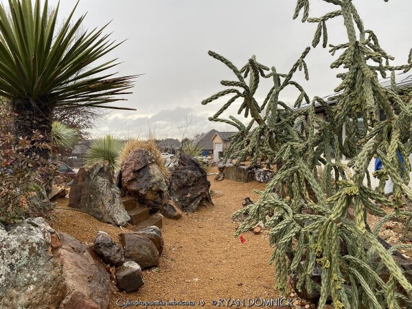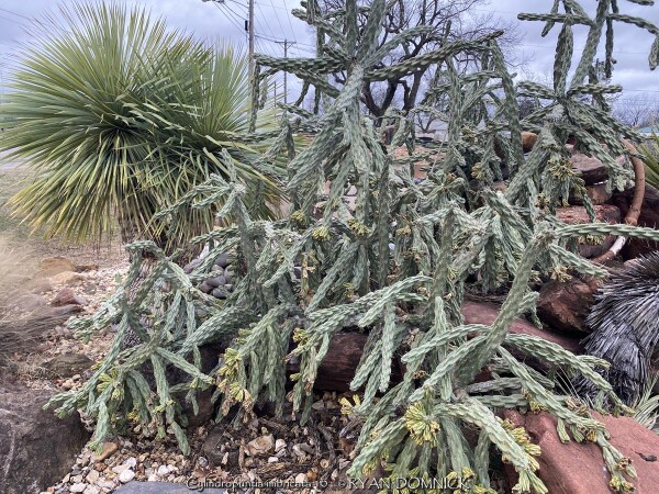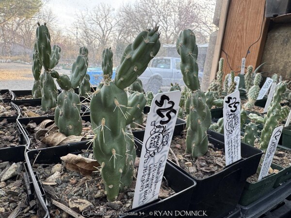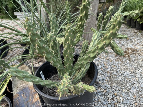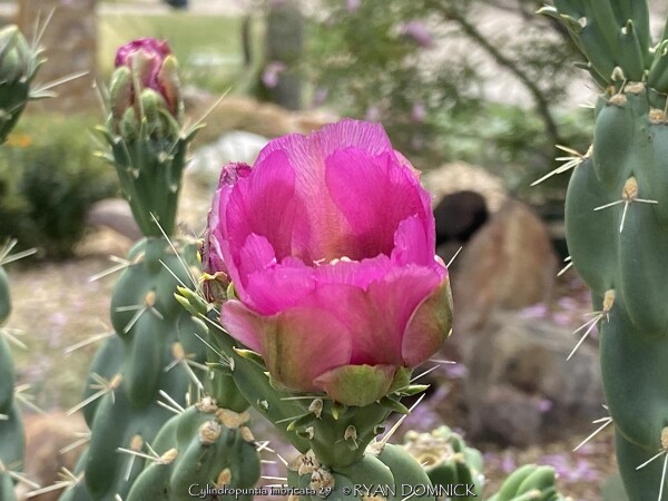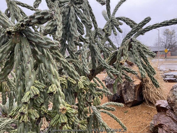 This hardy Tree / Cane Cholla variety came to us from Yucca Pointe Nursery in Stillwater, OK where it grows outside in the owner Nathan Priest's display garden. This upright Cholla Cactus (Cylindropuntia imbricata) features magenta flowers and upright growth form are a unique addition to the garden. Native to arid clay soils in Western Kansas, Colorado, Oklahoma and parts of the southwestern United States and Mexico, the plant grows into a vicious unforgiving shrub if you get too close. From a distance however, this cactus has a place as one of the few upright cacti that can handle extreme cold. In fact, I have seen this species growing a few times in Lawrence, KS in desert gardens and even in full (dry) shade! Flowering in shade is doubtful though. With well drained soils and proper siting, this cactus can handle our excess rainfall in Eastern Kansas. We are testing this outside in our crevice garden among other hardy cacti and succulents! We will keep you posted. (2024)