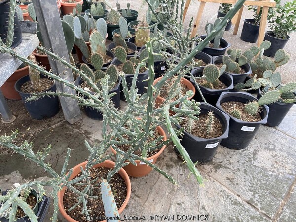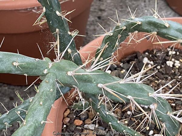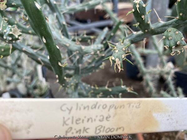 This hardy Klein's Cholla came to us from Oklahoma nursery near Tulsa. This upright Cholla Cactus Cylindropuntia kleiniae) features pink/magenta flowers and upright growth form are a unique addition to the garden. Native to arid clay soils in New Mexico and parts of the southwestern United States and Mexico (even possibly Oklahoma), the plant grows into a vicious unforgiving shrub if you get too close. From a distance however, this cactus has a place as one of the few upright cacti that can handle extreme cold when kept dry. With very well drained soils and proper siting, this cactus seems to take our excess rainfall in Eastern Kansas. We are testing this outside in our crevice garden among other hardy cacti and succulents! We will keep you posted. (2024)