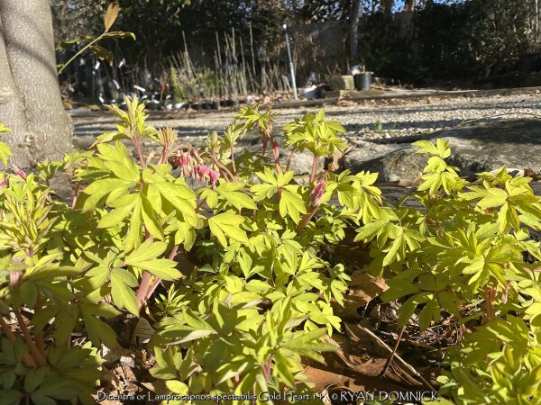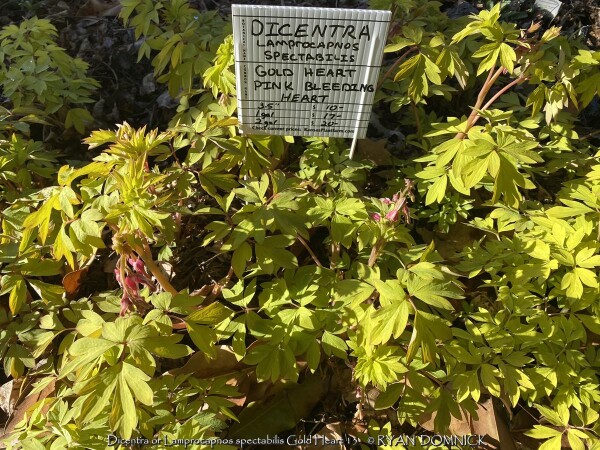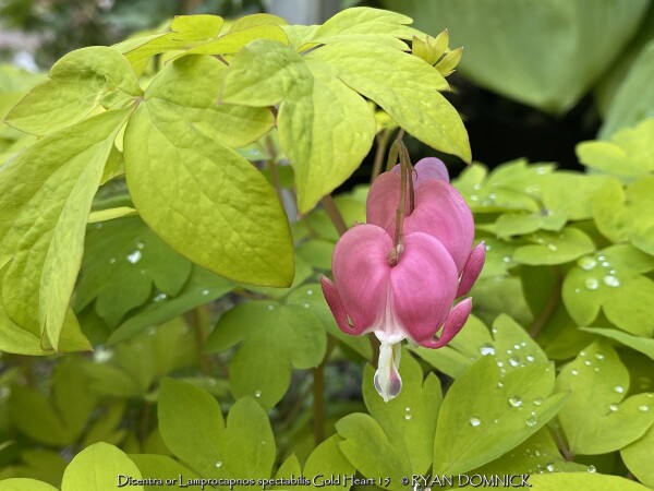 ***Description for this perennial available with future update!***>>>>>Gold Heart Pink Bleeding Heart, is also known as Dicentra / Lamprocapnos spectabilis 'Gold Heart'. It can handle a little Kansas drought in in moisture-retentive soils but not dry-shade. Foliage will flatten to the ground during drought then spring back up when moisture is available again. Generally however, in non-irrigated or poor soil areas, this plant will decline and allow weeds to intermix.
