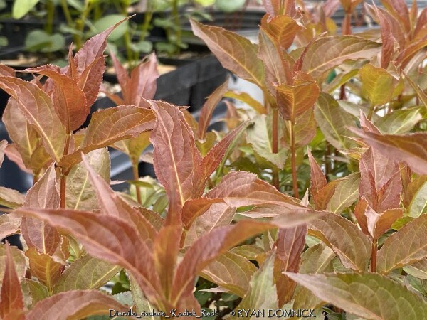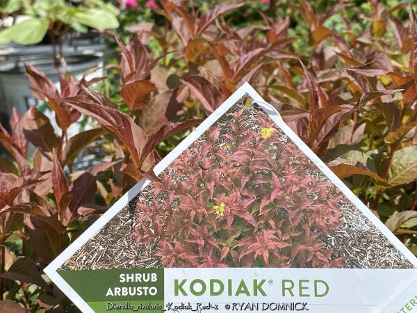 Kodiak® Red 2.0 Diervilla (Diervilla rivularis 'Kodiak Red') provides rugged beauty for the toughest spots in your landscape. Kodiak® Red diervilla is a native flowering shrub that looks great while shrugging off shade and problem soils. New growth emerges in spring with a deep burgundy tone, and turns vivid red in fall. During summer, leaves have a red edge and clusters of small yellow flowers appear all season. It's a simple but beautiful way to add low-maintenance color to parts of your yard that have been difficult to landscape. Kodiak Red 2.0 is sure to delight you with darker, longer lasting color. The blush on the new growth throughout the growing season is more reliable and the red of the fall color is intense. Top reasons to grow Kodiak Red diervilla: 1.One of the toughest landscape plants around! 2.Foliage emerges red and turns bright red in fall. 3.Yellow flowers all summer long. Diervilla needs very little care - if you'd like to prune it, do so in early spring. It does not require regular pruning, but if it starts to get a little sparse as it matures, cut it back to the ground in early spring for a fresh start. Uses Notes: The long, straight stems and neat foliage of diervilla makes it an excellent filler for cut flower arrangements. Maintenance Notes: Diervilla needs very little care - if you'd like to prune it, do so in early spring. It does not require regular pruning, but if it starts to get a little sparse as it matures, cut it back to the ground in early spring for a fresh start. Diervilla is sometimes called "bush honeysuckle," and though it is related to honeysuckle, diervilla flowers are not fragrant. However, more importantly, diervilla is NOT invasive, so it's a safe choice for planting anywhere. In Eastern Kansas, this cultivar performs WELL with just about everything nature has to challenge it! Heat and drought are tolerated if in shade or morning sun. Cold tolerance is no problem. No disease or pest problems. Great plant for dry-shade. Native to North America. All Proven Winners® plants are legally propagated, healthy and vigorous, true to name, and tagged with color pictures and growing information.