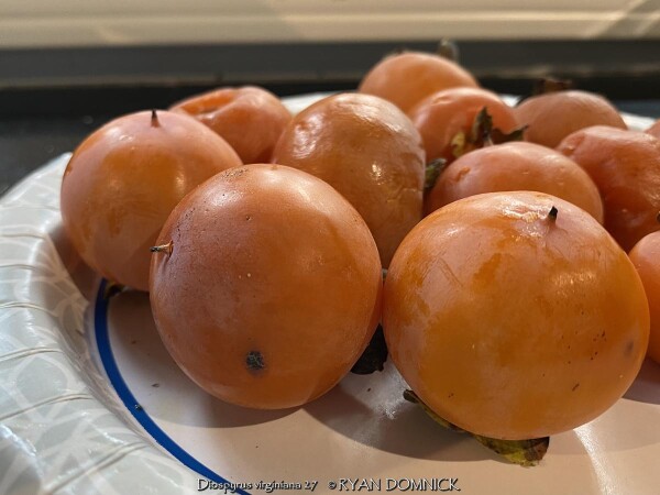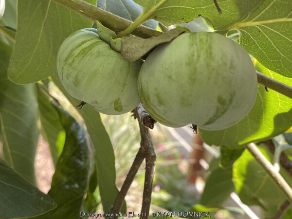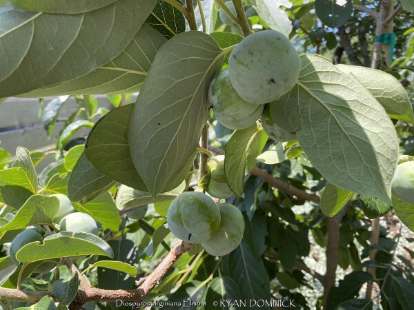 Elmo Persimmon Tree (Fruiting Cultivar), is also known as Diospyros virginiana 'Elmo' >>>>> According to Starks Bros "The Elmo American Persimmon is a hand-pollinated cross of Golden Supreme and Garretson Persimmon. It is also referred to as Claypool A-118. Chosen for its reliable crop of large fruits resistant to both pests and diseases. Elmo Persimmon is known for its heavy bearing. In Fall, enjoy harvesting large, orange, flavorful fruit with no black spots. Cross-pollination by a different variety is key to its growing and bearing success." Almost all American persimmon trees require a pollinator to bear fruit except 'Meader' and 'Yates'. Elmo Persimmons ripen in October to November with bright orange fruit. The fruit softens and sweetens once they experience frost.