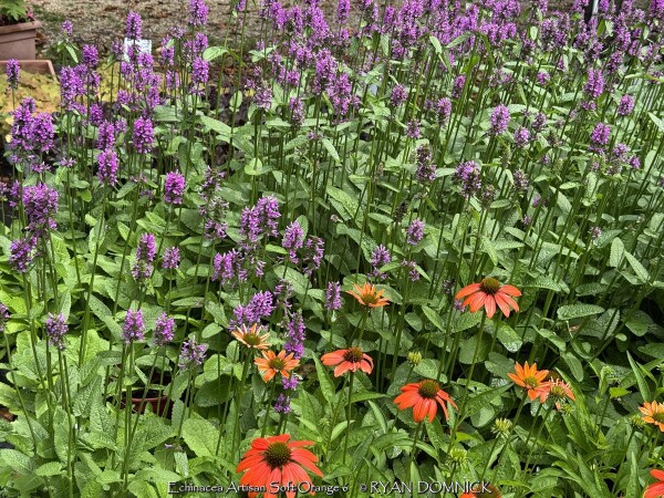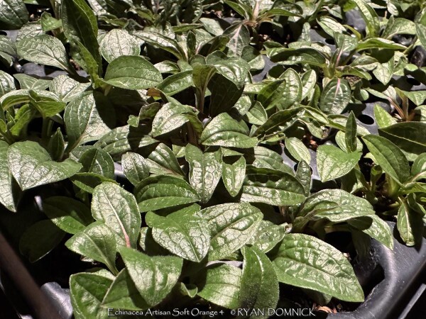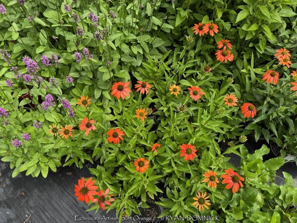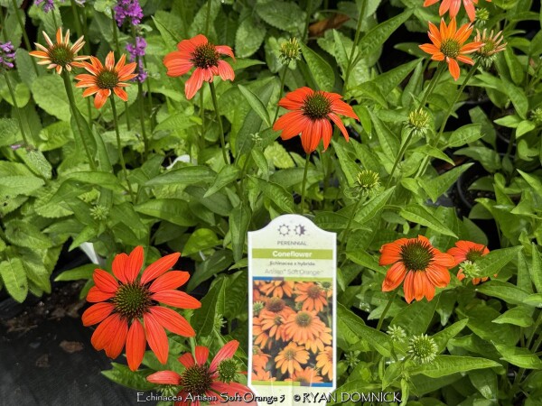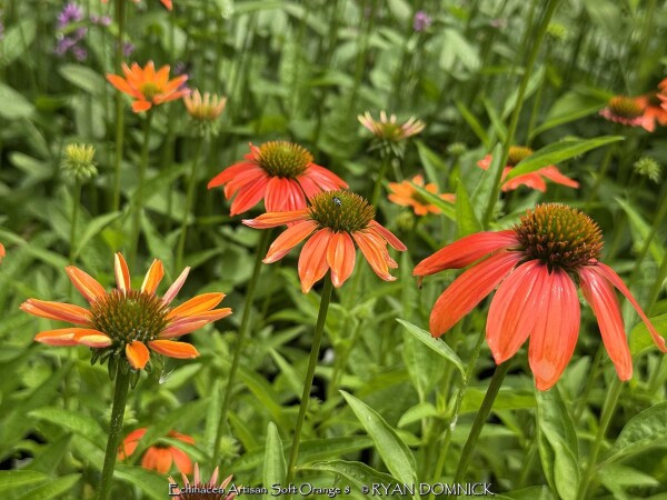 ***Description for this perennial available with future update!*** Echinacea 'Artisan Soft Orange' is also known as Artisan Soft Orange Coneflower (Seed-grown) >>>>>>> Echinacea purpurea is an herbaceous perennial native to parts of eastern and midwestern United States most common in Missouri and Arkansas. Its habitats include dry open woods, prairies and barrens. Echinacea are native to North America, featuring sunflower-like flowers with a dark center and colorful petals. Colors on native plants include purple, magenta, white, yellow. Intensive breeding efforts to fish out recessive genes have brought bright orange and red into the picture. Flowers occur in early to mid summer often continuing into fall especially if dead-headed. Its individual flowers (florets) within the flower head are two-toned, having both male and female organs in each flower. (hermaphroditic) Bees and butterflies including the monarch are common pollinators. The dead flowers are attractive to some for winter interest but for those wanting a tidy your garden, they can be trimmed early. Leaving some dried seed heads will be beneficial for wildlife and provide winter food for finches and other birds. Best growth generally occurs in full to part sun with well drained soils with low to average moisture. In Eastern Kansas, typically our 40 inches of rainfall is sufficient without extra water. Coneflower can also handle short one to two day flooding events and are sometimes used along the higher perimeter of rain gardens to bring in pollinators. Coneflower mixes well with many other types of plants ranging from other native plants to evergreens to hardy tropicals. Rabbits can be a problem young immature plants. A popular method of control is covering the plant with an upside down bowl-shaped chicken wire cage for the first year to allow basil foliage to establish well. You can quickly make these yourself with a low cost roll of chicken wire. Mature plants especially in groups with other mature landscaping generally do not have rabbit problems. Flowers are also popular in the florist industry as cut flowers or in the cottage garden. The genus echinacea has undergone intense breeding with the introduction of hundreds of new cultivars in the last 10 years.