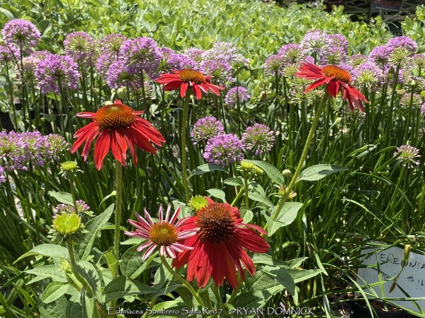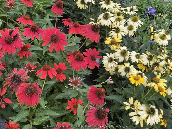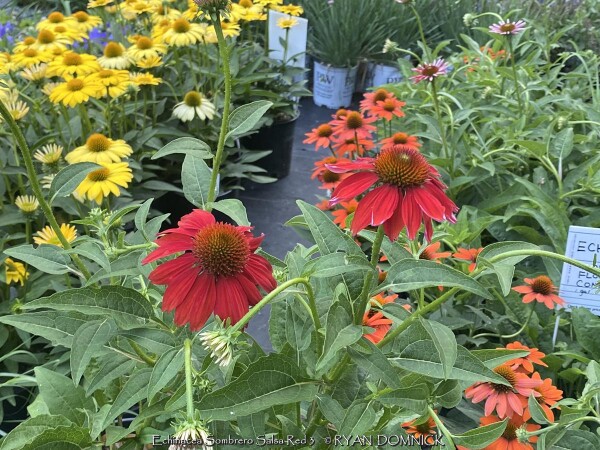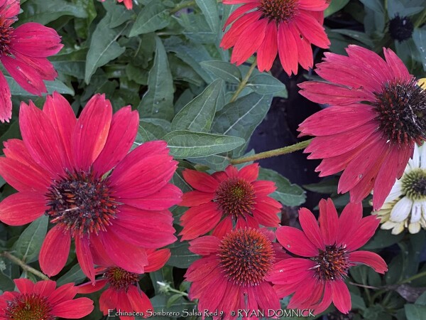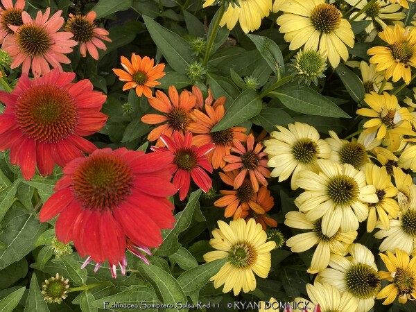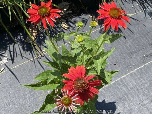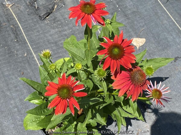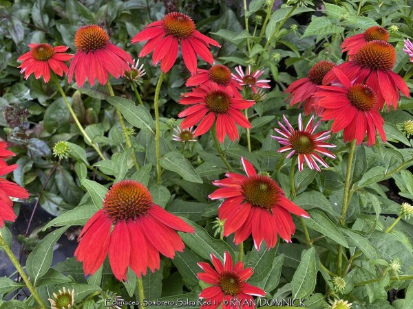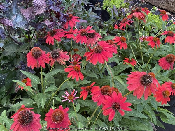 ***Description for this perennial available with future update!*** Echinacea 'Sombrero Salsa Red' is also known as Sombrero Salsa Red Coneflower >>>>>>>>>>>> Echinacea purpurea is an herbaceous perennial native to parts of eastern and midwestern United States most common in Missouri and Arkansas. Its habitats include dry open woods, prairies and barrens. Echinacea are native to North America, featuring sunflower-like flowers with a dark center and colorful petals. Colors on native plants include purple, magenta, white, yellow. Intensive breeding efforts to fish out recessive genes have brought bright orange and red into the picture. Flowers occur in early to mid summer often continuing into fall especially if dead-headed. Its individual flowers (florets) within the flower head are two-toned, having both male and female organs in each flower. (hermaphroditic) Bees and butterflies including the monarch are common pollinators. The dead flowers are attractive to some for winter interest but for those wanting a tidy your garden, they can be trimmed early. Leaving some dried seed heads will be beneficial for wildlife and provide winter food for finches and other birds. Best growth generally occurs in full to part sun with well drained soils with low to average moisture. In Eastern Kansas, typically our 40 inches of rainfall is sufficient without extra water. Coneflower can also handle short one to two day flooding events and are sometimes used along the higher perimeter of rain gardens to bring in pollinators. Coneflower mixes well with many other types of plants ranging from other native plants to evergreens to hardy tropicals. Rabbits can be a problem young immature plants. A popular method of control is covering the plant with an upside down bowl-shaped chicken wire cage for the first year to allow basil foliage to establish well. You can quickly make these yourself with a low cost roll of chicken wire. Mature plants especially in groups with other mature landscaping generally do not have rabbit problems. Flowers are also popular in the florist industry as cut flowers or in the cottage garden. The genus echinacea has undergone intense breeding with the introduction of hundreds of new cultivars in the last 10 years.