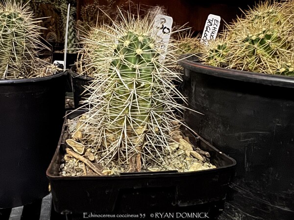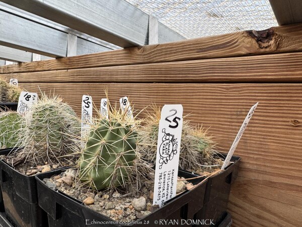 ***Description for this plant available with future update!*** Echinocereus coccineus is also known as Colorado Hedgehog / Claret Cup Cactus (Cold Hardy)>>>>>> With extremely well drained soils and proper siting, this cactus seems to take our excess rainfall in Eastern Kansas. These and other hardy barrel cacti are perfect for a dry mounded xeriscape gardens under south facing roof overhangs where it gets no winter moisture. We are also testing this outside in our Lawrence, KS (zone 6a) crevice garden among other cold-hardy cacti, succulents, and yucca! Watch for future updates-Jan-2025