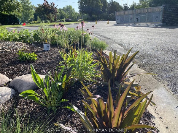 Safari Adventure Pineapple Lily (Eucomis comosa 'Safari Adventure') is typically grown for their wide tropical foliage and pineapple-like flowers. Deep purple foliage contrasts well with many other flower colors. The plants are temperate and subtropical herbaceous perennial bulbs native to areas with a summer wet season and dry winter. Pineapple Lily are hardy outside as a perennial when established and with minimal effort at least up to zone 6a. During the growing season, fertilize, water regularly, and plant in full sun. Plant these bulbs in the ground at least 6-8" deep with 3-4" of mulch to enjoy a wonderful tropical effect! Foliage may look bedwraggled by fall so it is ok to cut back foliage at that time. They can also be grown as a flowering summer patio plant. If growing as a potted plant and trying to overwinter, allowing the foliage to frost is ok, it will not kill the root system. However, do not allow the pot with rootball to freeze solid or go below 20 degrees for more than a few hours; move into a cold garage or basement over the winter with no watering. Cut back and allow to go dormant and place entire pot back out in April or May with a time-release fertilizer. Another more labor intensive way to overwinter pineapple lily is to remove them from the dirt, dust with fungicide, place in box with sawdust, and keep in the refrigerator. We consider this method old-fashioned and too much work but ok if you only want to save a few bulbs. If digging from the ground in colder zones, just save a big chunk with the dirt intact and place into a large pot in the garage.