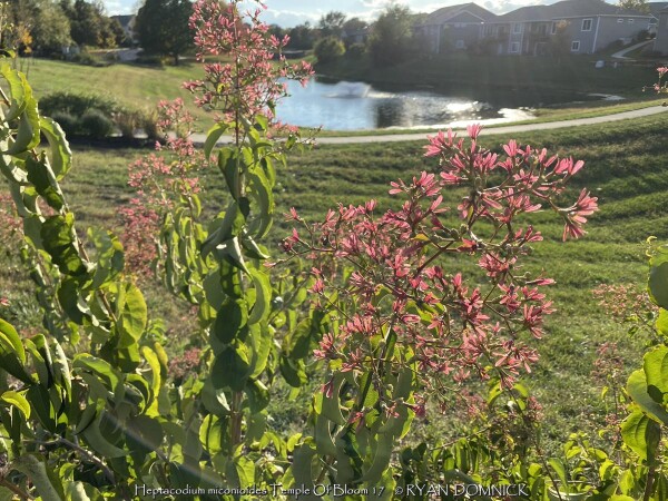 Hang on to your hat - Temple of Bloom® Seven-Son Flower (Heptacodium miconioides 'Temple Of Bloom') is going to blow your mind! We are thrilled to be able to bring this outstanding plant, previously known only by collectors and plant geeks, to everyone in North America. Temple of Bloom seven-son flower is a beautiful, easy to grow small tree which simply can't be matched for year-round beauty. In spring, the handsome leaves emerge, each sporting dramatically deep veins that make the plant stand out in the landscape. As the season progresses, the leaves grow larger and develop a long, twisting tip. Come August, when everything else is winding down, Temple of Bloom seven-son flower is just coming into its own, as it becomes covered in big clusters of fragrant white flowers that hummingbirds and other pollinators flock to. They last for weeks before gracefully falling to the ground to reveal vivid red, fan-like bracts, which make it look like the plant is blooming again in a completely different color. As winter comes and the leaves drop, the plant's elegant frame is revealed, along with amazing light tan peeling bark. Temple of Bloom® seven-son flower is the perfect choice for a special spot in your landscape. Plant it where it can be seen, often, and enjoyed any time of the year. Available in better garden centers in spring 2019. Top reasons to grow Temple of Bloom® seven-son flower: 1. Contribute outstanding interest to your home but needs little care. 2. Flowers in late summer and fall, when other plants are winding down. 3. Peeling bark looks great year-round but is especially memorable in winter. Temple of Bloomtm seven-son flower is at its best as a specimen, thanks to its elegant habit. Though its exact form will depend on how the grower has trained it, it is typically a small, multi-stemmed tree that reaches around 10' tall at maturity. Believe it or not, this beautiful and unusual plant requires essentially no care. It isn't finicky about soils, though it does appreciate regular moisture and good drainage. It will not require any special pruning, though you may prune or train it to your liking if you prefer. If you do prune it, do that in late winter or early spring, as the flower buds begin to set shortly after the plant leafs out. In Eastern Kansas, this cultivar performs WELL with just about everything nature has to challenge it! Heat and drought are tolerated in full sun or shade. Cold tolerance is no problem. No disease or pest problems. All Proven Winners® plants are legally propagated, healthy and vigorous, true to name, and tagged with color pictures and growing information.