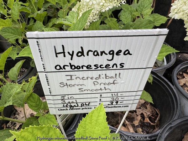 ***Description for this plant available with future update!*** Hydrangea arborescens 'Incrediball Storm Proof' is also known as Incrediball Storm Proof Smooth Hydrangea >>>>> Spring Meadows nursery says "As the name suggests, Incrediball Storm Proof smooth hydrangea (Hydrangea arborescens) tackles the most common complaint people have with the genus: while other smooth hydrangeas flop, this incredibly stout and sturdy stemmed beauty holds its blooms upright during—and even after—heavy summer downpours. Though its blooms aren’t quite as gigantic as the original Incrediball®, they are so numerous and large in proportion to this compact variety that it absolutely lives up to the expectations associated with this now household name. It's a robust, vigorous, heavy bloomer with a rounder, denser habit than other smooth hydrangeas."