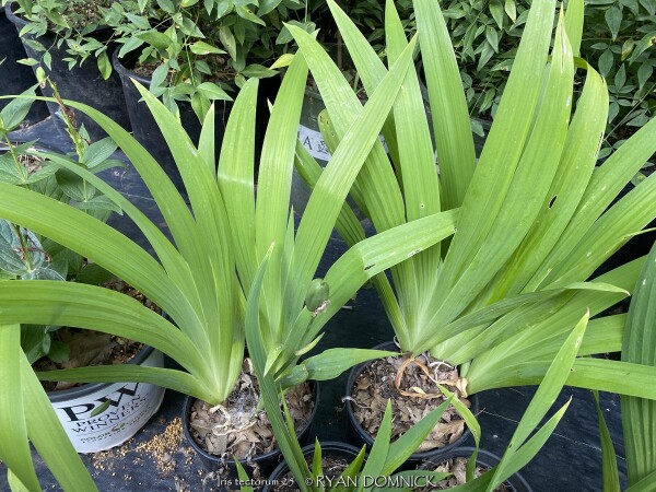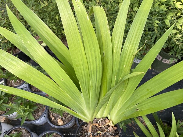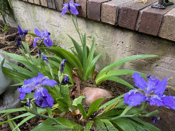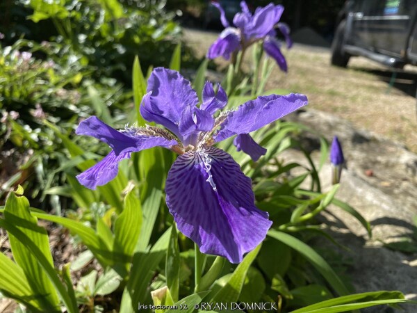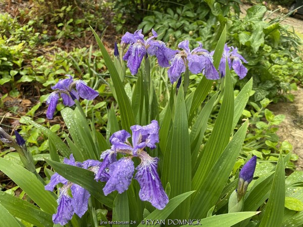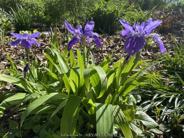 Japanese Roof Iris (Iris tectorum) is a rhizomatous perennial iris species with attractive clusters of wide fan-like foliage. It is native of China and Korea, with lavender-blue, bluish-violet, purple-blue, blue-lilac or sky blue flowers. Although flowers are attractive, this plant is grown just as much for its foliage. It prefers to grow in rich, well-drained, forest soil in part shade. This plant will grow in thin soils on top of rock outcroppings provided that moisture is available; Iris tectorum is commonly called 'roof iris' because it was grown in the thatch of Chinese and Japanese houses. Mostly used in Kansas gardens as an accent or curiosity plant.