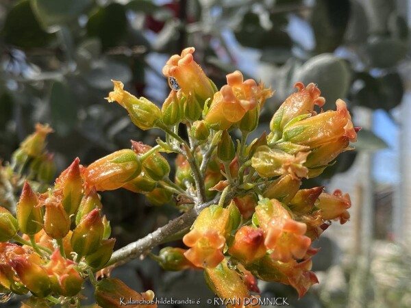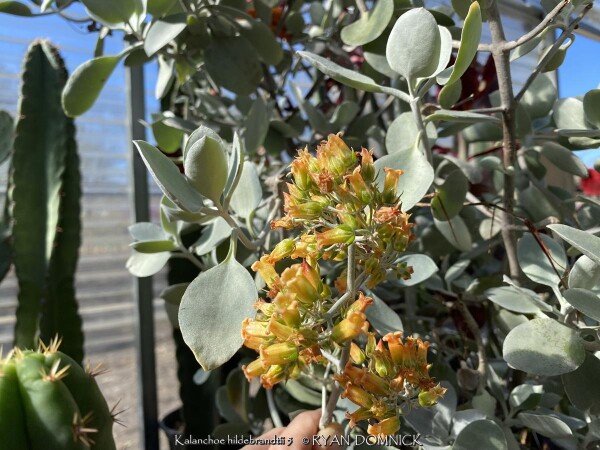 The silver foliage color of (Kalanchoe hildebrandtii) steals the show. Usually used as a patio or house plant in Kansas, they can also be grown as an annual if purchased in bulk. Grow in full sun to part sun with optional extra watering including that which comes from rainfall. Plants with time to acclimate will thrive in full sun but be careful not to rush it or sunburning will occur. Generally if moving outside for the summer, allow 2-3 weeks of part shade or morning sun before placing in full sun. Repotting may or may not be needed depending on how large you want the plant to grow; plants can continue to grow and tolerate extremely root-bound pots. Protect from temperatures below 35 degrees F and move into a bright window over the winter with no watering. Do not allow Silver Teaspoons plant grown in pots to freeze solid or get close to freezing especially if soil is wet or death may occur. As a winter house plant, it will look presentable all winter long with just a few monthly or almost no waterings if you forget. As a permanent house plant, provide bright light and allow the soil to dry between waterings for many years of carefree enjoyment. Potted plants are very low maintenance and tolerant of indoor environments. This is not at all a big-box store plant so be prepared to expand your plant palette with Silver Teaspoons!