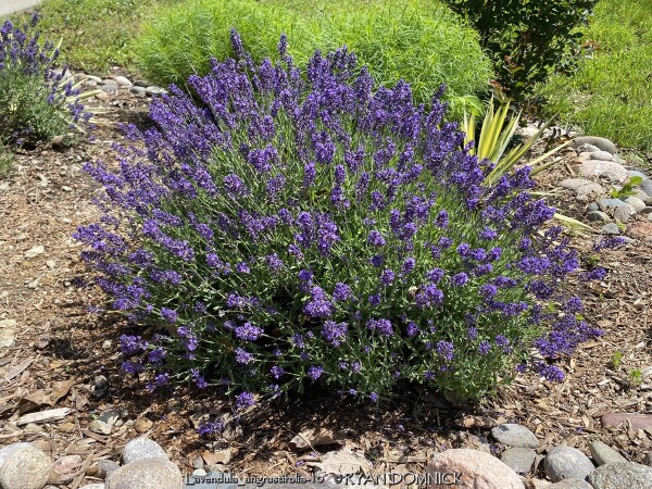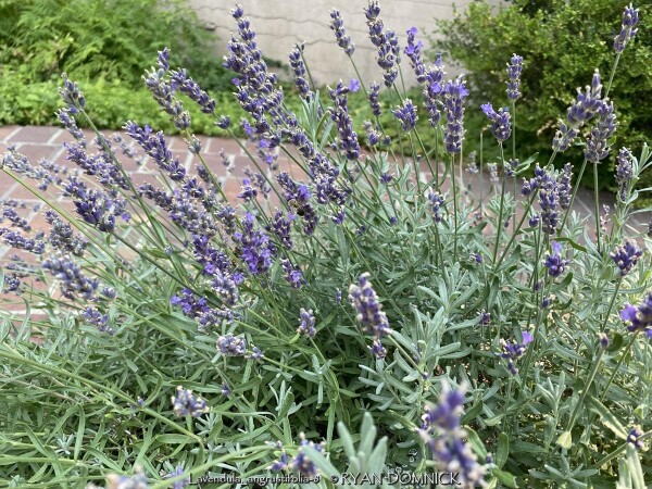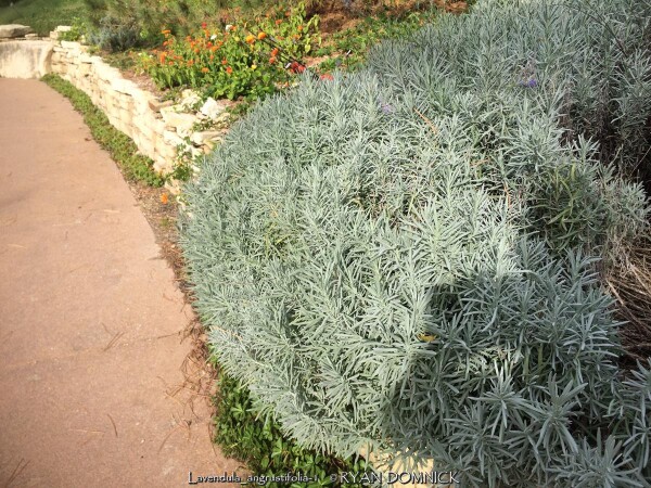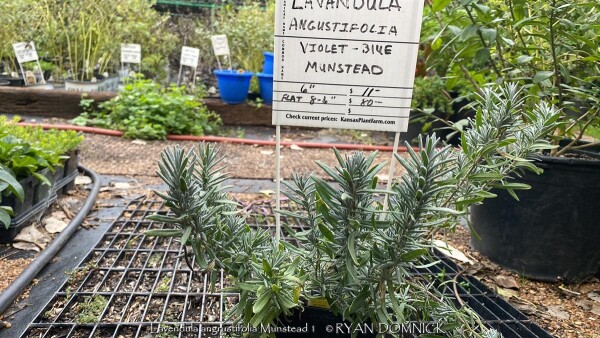 Lavender is one of the most well-known flowers and herbal qualities. It features grayish green aromatic and evergreen foliage with lavender flowers. Blooming usually starts during the heat of summer and continues until frost. Lavender is native to Mediterranean climates with average moisture in the summer and dry, mild winters. Because of its heritage, it resents cold wet winters and needs well drained sandy, silty, or rocky soil. In the short term, it will typically grow in any soil during the summer making it very useful even as an annual. In Kansas landscapes, it is commonly used as an annual or short-lived perennial where lots of color is needed in full sun. Root rot is likely when placed in poor draining soil or even in rich garden soil. Summer heat is usually not a problem but not extreme heat of a south or west wall. Lavender does reasonably well growing out of retaining walls or on top of retaining walls with perfect drainage. Lavender is actually a woody shrub but grown like a in perennial because every so often do you need to trim it back to a few inches off the ground. Lavender combines nicely with any red, orange, or yellow flower or where needing a perennial with evergreen winter color. Lavandula angustifolia 'Munstead' is a commonly sold cultivar.