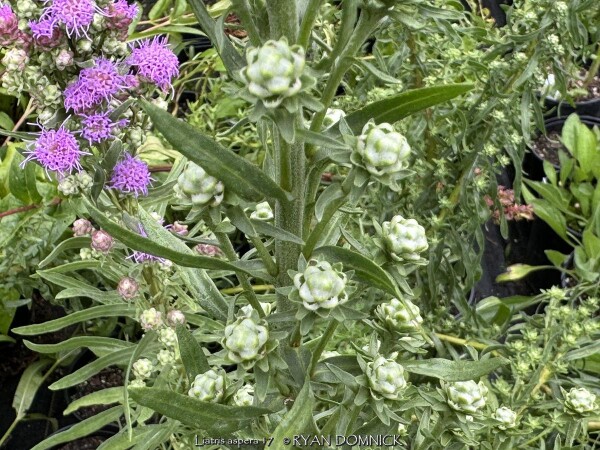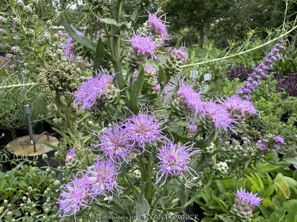 ***Description for this perennial available with future update!*** Liatris aspera is also known as Rough Blazing Star / Liatris >>>>> >>>>> Blooms later (late summer to fall) than most other Liatris species. This species is distinguished from other Liatris species by its rough appearance and rounded individual flower clusters. Good winter drainage is important.