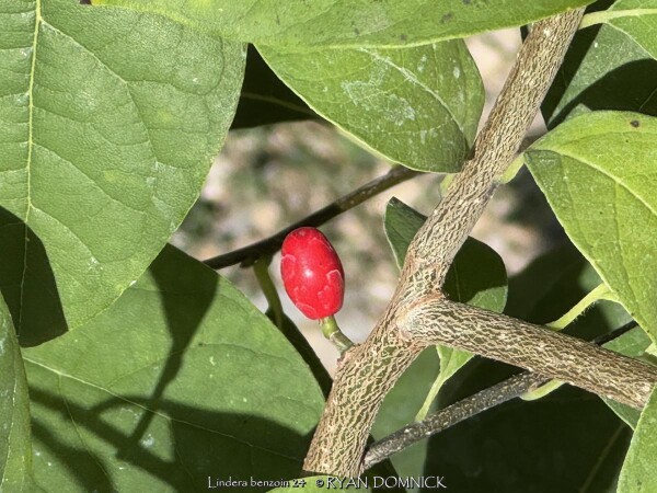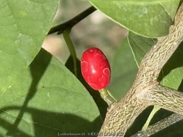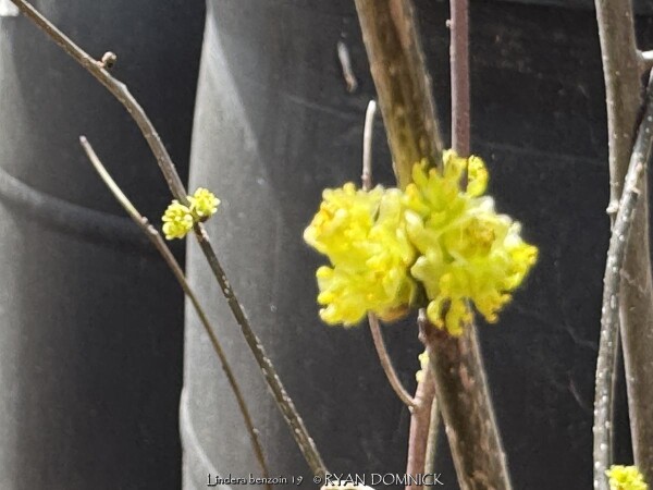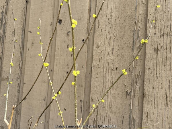 Native Spicebush (Lindera benzoin) is a multi-stemmed, irregularly rounded understory shrub native to eastern North America, including Eastern Kansas. Foliage is a matte bright green then turning an attractive yellow in autumn. The yellow flowers grow in showy clusters appearing in early spring before foliage emerges. Flowers on male and female plants look noticeably different. The flowers have sepals in place of petals and a very sweet aroma. Red berries are produced if a male and female plant are close together. Nutritious fruit is quickly eaten by several bird species. Full shade to part shade is best with average to moisture-retentive rich soils. Height reaches 6-9' tall in Kansas and Missouri. The name "Spicebush" comes from foliage and stems that are aromatic when bruised. Spicebush tolerates alkalinity, and in the wild is sometimes found in soils with exposed limestone. Some drought is tolerated if planted in shade; dry-shade experiments are in progress in Lawrence, KS. Use in the landscape as a wildlife friendly background shrub or grouping in shade gardens.