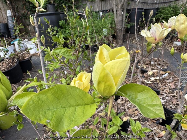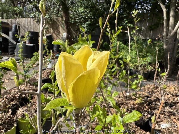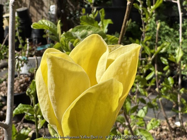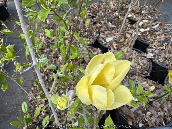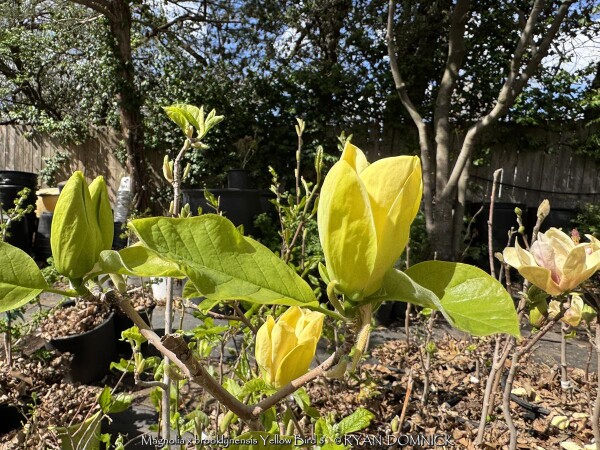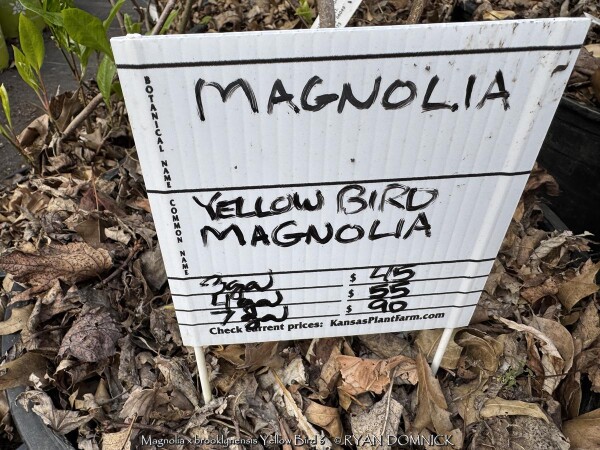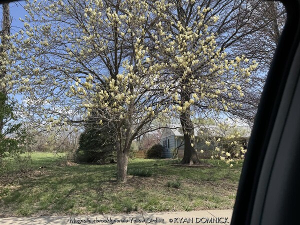 Yellow Flowering Magnolia (Magnolia x brooklynensis 'Yellow Bird') is a rare jewel in the landscape: a tree with giant canary yellow flowers! Yellow Bird is an upright, conical to pyramidal, large deciduous tree that can grow 40 feet tall in Kansas. This magnolia would be a fine residential specimen in sheltered locations with moist, rich soil with plenty of space to spread. Magnolias in general are a family of plants that have been around for millions of years and are among the most primitive of all flowers. In fact, most magnolia flowers evolved before bees and are thus pollinated by beetles. Magnolias generally grow in moist, well drained soils in sun or shade. They have no serious pests or disease problems.