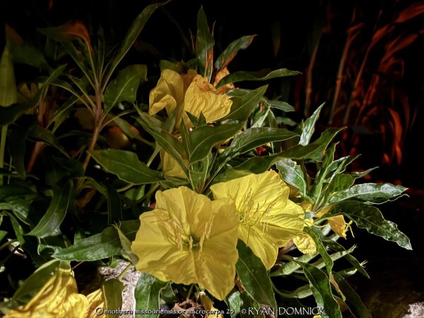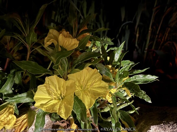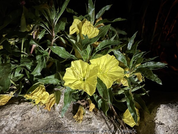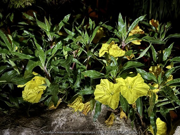 ***Description for this perennial available with future update!*** Oenothera missouriensis / macrocarpa is also known as Yellow Missouri Primrose >>>>>>>>>>>>Missouri Primrose is a native wildflower with bright lemony yellow flowers occurring mostly in Kansas, Missouri, Oklahoma and Texas. native habitat includes limestone glades and bluffs, rocky prairies, and Great Plains. This wildflower also colonizes readily, will grow under the mover blades and can be found along state highways. Foliage is often a green to silver and also very attractive. Flowering is relatively short at 2 to 4 weeks but interesting green four-winged seed pods develop. These eventually break off and blow away spreading more seed. In the landscape, Missouri Primrose can be used in any dry soil situation including berms, hot south or west side of the house, or any other full sun area. These will grow in poor rocky, sandy or clayish soils and even rich organic soils with slightly increased root rot susceptibility. With our average 40 inches of rain per year in eastern Kansas, extra Irrigation is not recommended. Missouri Primrose can be planted in parking lot medians and other hell strips as a very durable groundcover. Combine with any other flower colors except yellow. There is quite a lot of diversity within the species so plants from different locales will have different foliage adapted to the site.