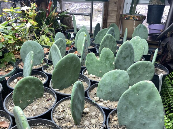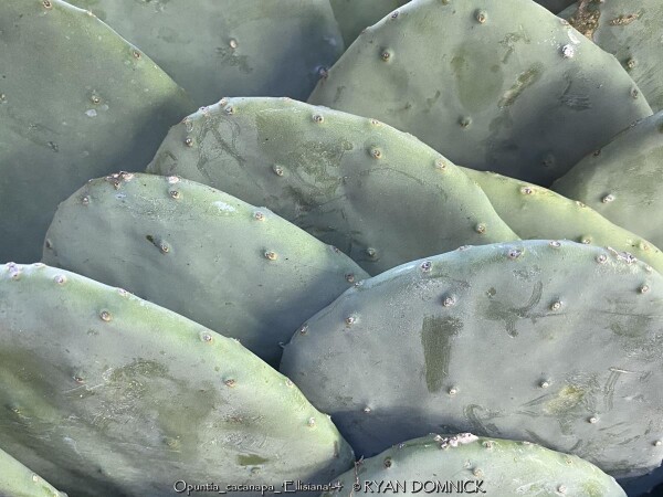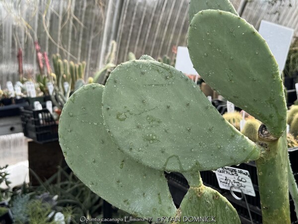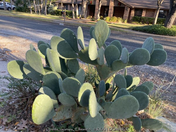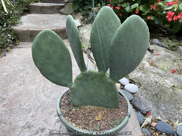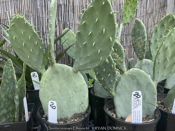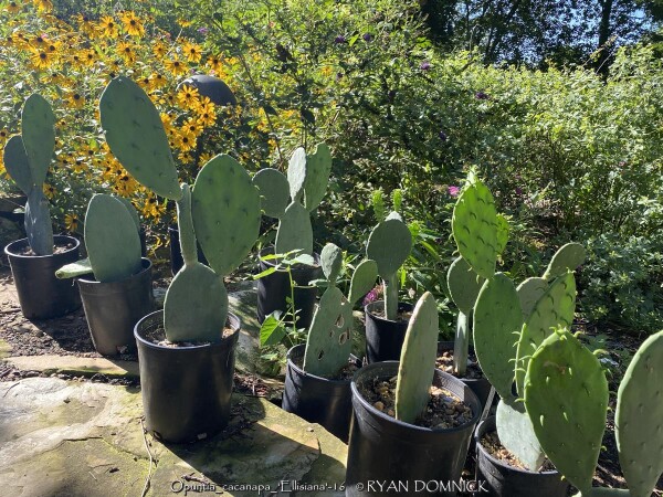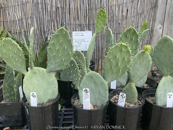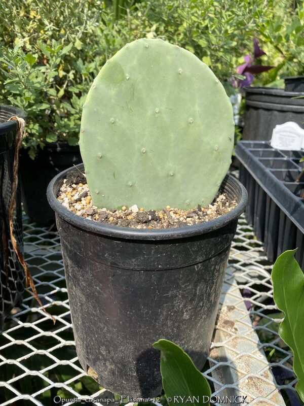 This prickly pear (Opuntia cacanapa 'Ellisiana') is truly spineless! Yes, completely spineless and free of glochids. The smooth green paddles and upright growth habit create a unique addition to the desert garden. The pads are sparsely spined, light green, and hardy to about 0 degrees F. This cactus has a place as one of the few upright cacti that can handle extreme cold. Ellisiana Spineless Prickly Pear is most often used as a patio plant in Kansas. Place in full sun with no extra watering except from rainfall. Repotting may or may not be needed depending on how large you want the plant to grow. Potted plants are hardy to at least 10 degrees F if kept dry so you can wait awhile to move these in for the winter. Then move into a cold garage, basement, or window over the winter with NO watering. Although un-tested by the author, this opuntia could survive in a microclimate under a south facing roof overhang kept completely dry in the winter and controlled water in the summer in zone 6a. Several plantings in Tulsa, Oklahoma at the Gathering Place endured temperatures as low as -11 degrees F along with prolonged cold (5 days of highs in the teens and lows in the single digits) in February, 2021. This interesting and "completely safe" cactus, when special ordered in quantity, can be used as an annual mass planting in the landscape. If grown as a patio or house plant, move to a bright interior window over the winter before extreme cold occurs with no watering and keep above freezing. If grown as a summer patio plant, move to a bright interior window over the winter before extreme cold occurs with no watering and keep above freezing. As a winter-only house plant, it will look presentable all winter long with just no waterings. As a permanent house plant, provide bright light and allow the soil to dry between waterings for many years of carefree enjoyment. Pads are easy to propagate. This offering is for un-rooted cuttings (pads) Pads need a few days to dry and callus to be ready to root.