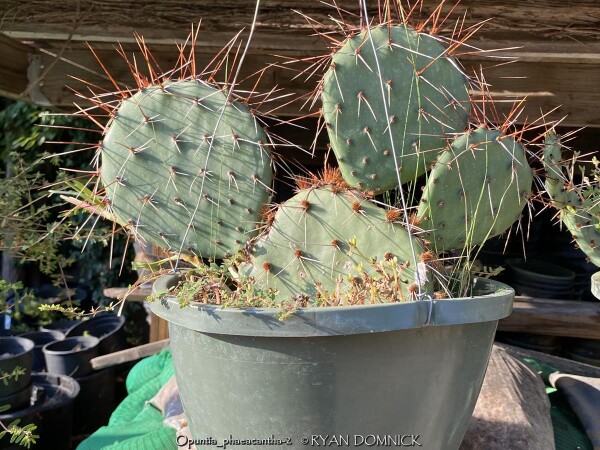 ***Description for this plant available with future update!*** Opuntia phaeacantha is also known as Brownspine Prickly Pear / Tulip Prickly Pear Cactus (Cold Hardy)>>>>>> With extremely well drained soils and proper siting, this cactus seems to take our excess rainfall in Eastern Kansas. These and other hardy barrel cacti are perfect for a dry mounded xeriscape gardens under south facing roof overhangs where it gets no winter moisture. We are also testing this outside in our Lawrence, KS (zone 6a) crevice garden among other cold-hardy cacti, succulents, and yucca! Watch for future updates-Jan-2025