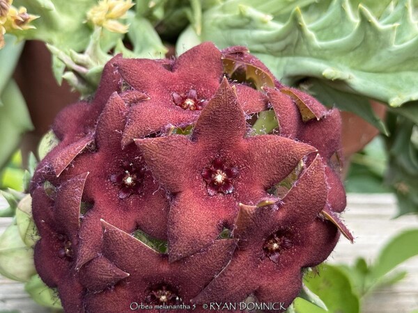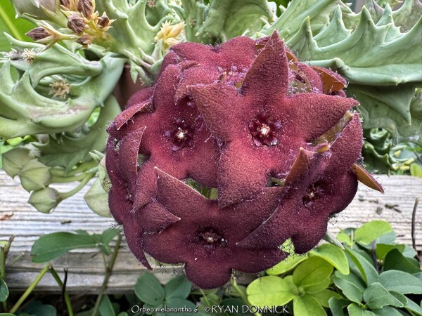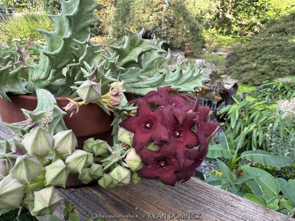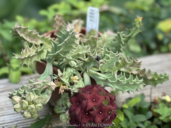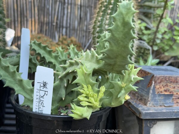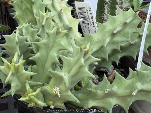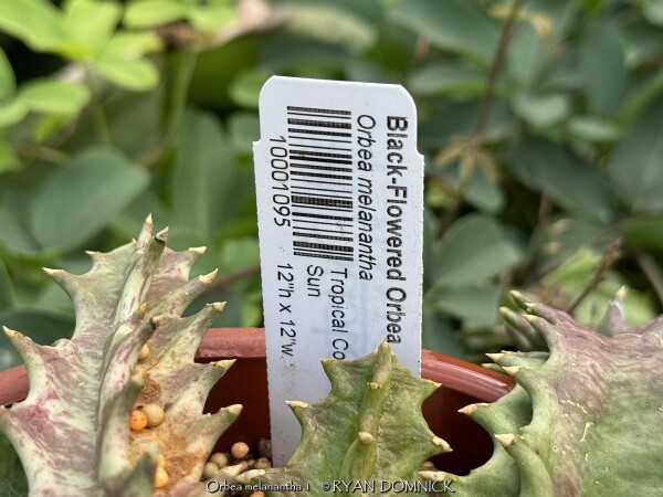 ***Description for this plant available with future update!*** Orbea melanantha is also known as Black-Flowered Orbea (Tropical)>>>>> Cacti are known for their spines, unusual shapes and beautiful flowers. Both succulents and cacti store water in their fleshy tissues. And can survive long periods without water. Cacti and succulents are usually grown as a deck/patio plant or house plant in Kansas. Grow in full sun with little to no extra watering except that which comes from rainfall. Generally, plants may be brought out in Late May through Early October in our zone 6a Lawrence, KS climate. To play is safe, potted plants are best moved in before autumn leaves begin to drop and before night temperatures get below 45 degrees F. It is very important to avoid the combination of wet and cold. Move to a bright interior window over the winter with little to no watering and keep above 50 degrees F. As a winter house plant, it will look presentable all winter long with little to no waterings. As a permanent house plant, provide bright light and allow the soil to dry completely between waterings and you will get many years of carefree enjoyment. Plants grown permanently indoors may eventually begin to elongate stretching for light and lose their spine color. It can be hard to reproduce the intense UV sunlight they need when growing indoors so moving outside for the summer is best. Generally if moving outside for the summer, allow 1-2 weeks of part shade or morning sun before placing in full sun. Plants with time to acclimate will thrive in full sun but be careful not to rush it or sunburning may occur. Repotting may or may not be needed depending on how large you want the plant to grow; plants can continue to grow taller and tolerate extremely root-bound pots but may need wind bracing. If repotting, make sure to use a sharp draining low organic cactus mix with plenty of sand and perlite but avoid peat moss. The “soil” most commercial cacti are potted in to too peaty and light weight. This soil becomes hydrophobic and shrinks after becoming bone dry and difficult to re wet again. Cacti never grow in peat-based soils in nature; this “Soil” is only good for shipping because of the light weight. Potted plants are very low maintenance but watch for scale and mealybugs that may hide beneath the cover of spines. The best pest removal approach is to periodically wash the cactus off. Achieve this with a water nozzle or hose breaker turned mostly off to increase the pressure from the blast of water. This high-pressured water kills the pests without damaging the thick cactus skin. Here are some little-known or rare factoids about cacti: 1. The "spines" are actually modified leaves filled with sap at first, then quickly drying out to form the spines! 2. Many cacti have bright colored flowers that mainly attract bees, while some tubular flowering types attract hummingbirds and bats. 3. Late on the evolutionary timeline, cacti fossils are rare to non-existent. Cacti are native almost exclusively to the Americas, while succulents can include a much larger plant palette be from any dry area in the world. 4. Some cactus plants have been known to survive more than 2 years without water. 5. Some cacti first evolved in a dry climate that later became wetter again. For example: several jungle species live as epiphytes in trees to achieve the fast drainage they need.