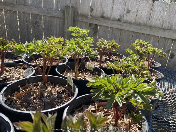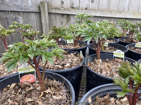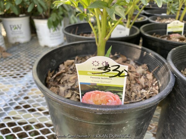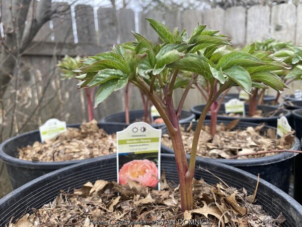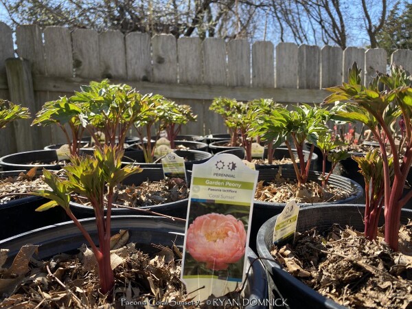 Peonies (Paeonia), along with roses are one of the most universally well-known flowers. The toughness and durability of this plant can be seen in cemeteries or around abandoned houses, surviving decades even 100 years or more without care. Peonies are native to China in cold continental climate areas but also do well in Kansas. Large flowers come in different shades of white, red, and pink. Peonies bloom usually around Memorial Day hence their popularity and cemeteries. Blooming lasts about 2 weeks but can be short-lived if a thunderstorm happens during the last week of blooming when petals are fully open. In zone 6 and south, the foliage is glossy green and attractive throughout the first half of summer. Usually, by late summer, foliage is tattered from drought stress and diseases. This has no ill effect on the health of the plant as it is already set its growth buds for next year. In northern areas (USDA zones 3-5), Peony foliage lasts all summer and turns a brilliant red and orange color in the fall. Due to its need for cold winters, peonies will not grow well further south than zone 8b. Gardeners in south Florida have had success getting peonies to bloom by dumping a bag of ice on the dormant plant every day for 5-6 weeks in winter: sounds like a lot of work huh! Due to its cold tolerance, peonies may be grown in above-ground pots or raised planters year-round. When planting outside, be careful to plant at the correct depth with pink buds slightly below the soil or plants will not bloom. Overall, peonies are a very reliable long-lived plant in Kansas surviving everything. But they do require some maintenance to look their best. Ultra cold-hardy plants from northern climates normally dislike our long hot humid summers; although we are on the Southern edge of this plant's adaptability, it still survives reasonably well here. Look for a cold microclimate planting location such as East or North exposure. Paeonia 'Coral Sunset' features double flowering multi-colored (Pink,Salmon,Peach,Gold) blooms.