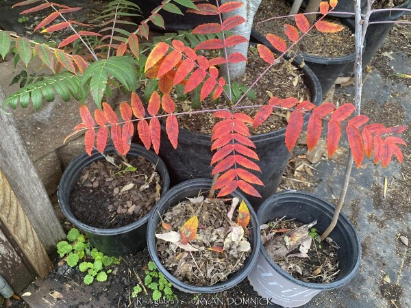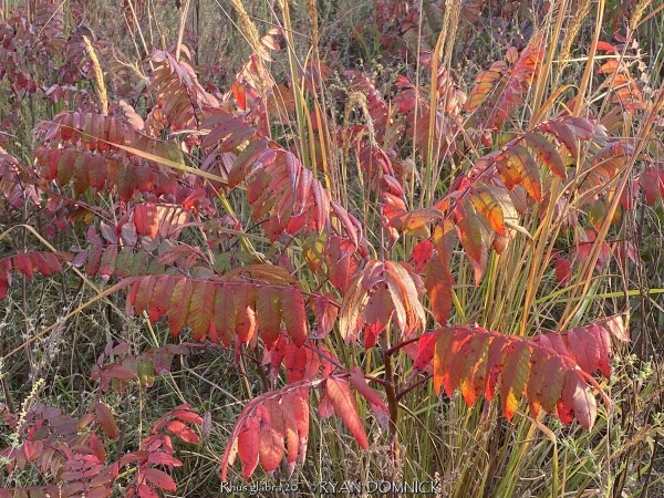 ***Shrub descriptions available with future update!*** Rhus glabra is also known as Smooth Sumac >>>>>>>>>>>>>Smooth Sumac (Rhus glabra) features bright green leaves that turn brilliant red in the fall. Light yellow flowers and occasional red berries are also ornamental features.>>>>>>It will thrive in full sun in medium to bone dry soils. In the landscape, it is commonly used as large mass planting on hills and berms. Because of its tolerance for adverse conditions including poor soil and rock, it is often one of the last resort plants that will survive in certain areas. This plant also does well in hot dry parking lot islands (hell-strips) or along busy roads. Plants adapt well to hot south or west sides of the house enduring temperatures of over 100 degrees F with no foliage burn. Another great spot is planting on top of a retaining wall allowing it to cascade down. We do not recommend planting in small areas or in spaces that it will overrun neighboring plants. Avoid potentially poorly drained areas or root-rot will occur. >>>>>>>>>Rough-leaf dogwood is a suckering shrub or rarely a small tree to 15 ft. It is native woodland edges and tall-grass prairie ravines in Kansas olong with the Great Plains and Midwestern regions of the United States. This dogwood is easily recognized by the rough, upper leaf surfaces with flat-topped clusters of creamy-yellow flowers and white fruit on reddish brown or gray twigs. Fall color is purplish-red. Cream-white flowers about 1/4 inch wide, with 4 petals characteristic of all dogwoods. Numerous flowers are in broad clusters at the ends of branches, appearing from April to early June. White fruit then appears in late summer and early fall. A favorite of many wild birds, the fruit is usually stripped clean within a couple weeks. It spreads from root sprouts and provides cover for wildlife and erosion control along ditches. Other uses of roughleaf dogwood include buffer strip around parking lots, highway medians, dust screens along country roads, and naturalizing. It will grow in full sun or full shade in medium to dry soils including dry-shade. However, fall color is quite a bit reduced in full shade. Because of its tolerance for adverse conditions including poor soil and rock, it is often one of the last resort plants that will survive in certain areas. For the home garden, the species is generally too aggressive to mix with other plants especially when irrigated and growing in rich soil. However, in a difficult dry-shade garden, it will thrive, flower, and be relatively tame with little spreading.