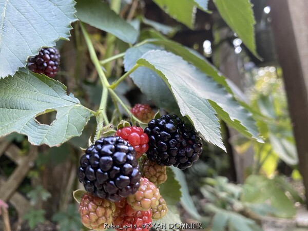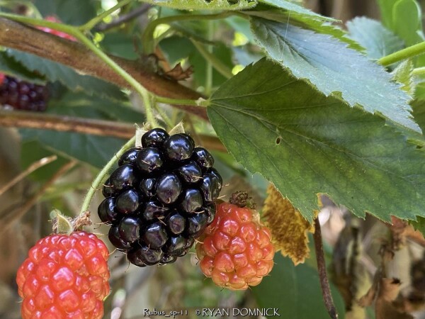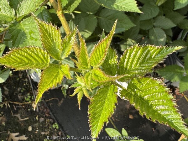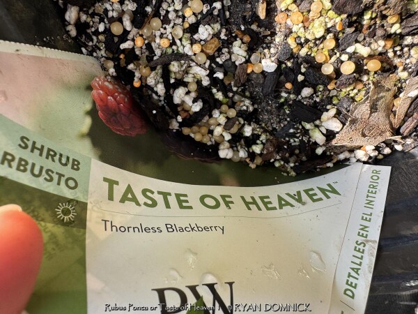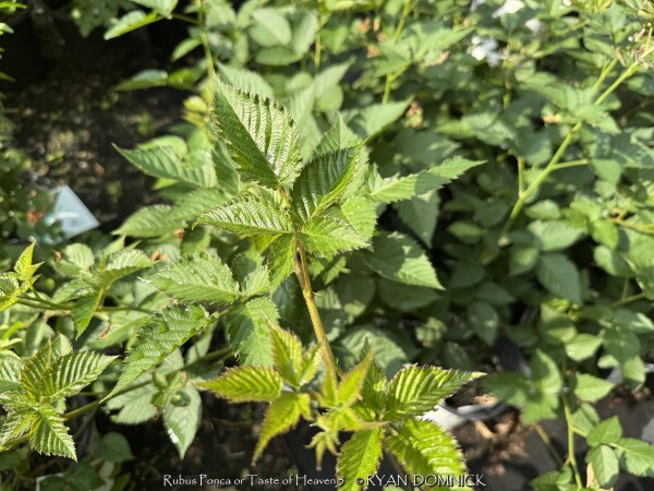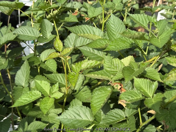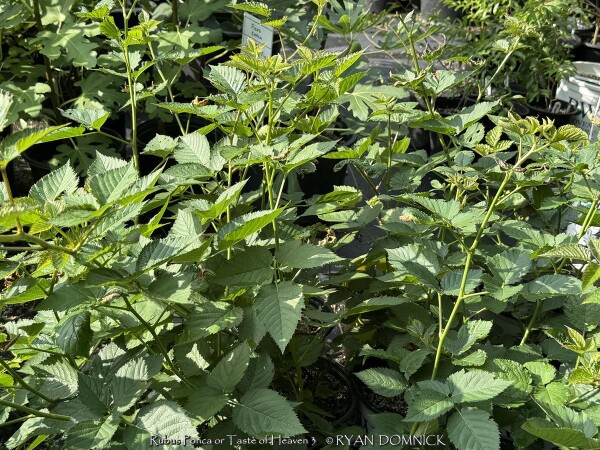Blackberry (Rubus sp.) is an "easy to grow" edible fruit that is worth growing in Kansas. Store-bought blackberries are expensive and don't taste as good as garden grown fruits. All cultivars of blackberries have perennial roots, but most top shoots only live for two years. (meaning shoots grow in the first growing season and fruits grow on those shoots during the second growing season) The cycle is repeated; maintenance involves removing old canes after decline or death. Raspberries are vigorous and can be locally invasive in the garden but rarely invasive in the wild. They propagate by basal shoots (also known as suckers) spreading some distance from the main plant. After establishment, it is high maintenance if it has already filled the space and you don't want it to spread any further so plan accordingly. In the landscape, raspberry and blackberry mix well into garden designs with ornamental plants as long as you create it's own area (like a background fence to train plants on) The main difference between raspberry and blackberry are that the fruit releases from the raspberry differently. The "torus" or inside center of the fruit is hollow and releases from the stem with raspberry. With Blackberry, the "torus" or center "picks with" the fruit giving a solid fruit to eat. (just in case you have always wondered) Our supplier, Spring Meadows Nursery has this to say about this new PROVEN WINNERS plant: Taste of Heaven blackberry (Rubus 'Ponca') is the sweetest, most flavorful blackberry on the market - and now you can grow it at home. We know, that's a tall claim, but you don't need to take our word for it: this article in the journal HortScience confirms it. And we know because we tasted literally hundreds of different blackberry varieties before deciding this would be the one to make it on to further testing. Taste of Heaven is a vigorous, thornless blackberry that produces large, luscious fruits over several weeks in summer. It's a floricane variety, fruiting only on second-year canes, and does not strictly require trellising or support, though in the garden, it is easier to care for and harvest with something in place.