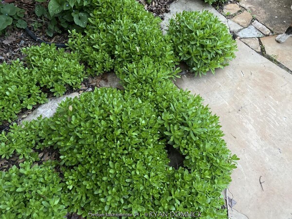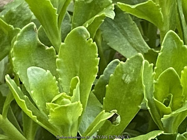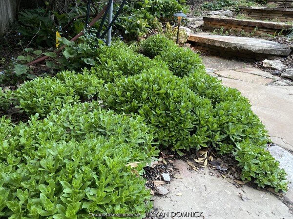 Kamtschaticum Sedum (Sedum kamtschaticum) is known for its compact mats of bright green foliage and yellow-gold flowers in the spring. Fall color turns a beautiful firey orange-red before going dormant. Kamtschaticum Sedum is native to northern China and along the Pacific coast of Siberia including the Kamchatka Peninsula with a similar climate of cold winters and hot summers. Bright green growth emerges early in the spring and spread slowly, rooting a little bit as it spreads but not aggressively. Growth is dense enough to resist most weeds. Kamtschaticum Sedum is useful as a small scale groundcover, rock garden plant, retaining wall plant, or even dry shade gardens. This tough sedum will grow in full sun to full shade in just about any soil except for wet poorly drained ones. Of all of the sedums, this is probably the most resistant to any kind of problems including root rot. I have witnessed clumps surviving and thriving for 20-30 years or more. There is really almost no maintenance with this sedum but you may choose to weed eat it in the winter for a more tidy appearance. The only slight problem is that when grown with too much water, The crown opens up as it flops over and looks slightly untidy. The flowering period is also pretty short. Considered one of the best plants for solving your most difficult dry-shade landscape challenges. Big-Leaf Kamtschaticum Sedum (Sedum takesimensis / kamtschaticum) is taller with larger leaves and larger flowers, about double that of the species.