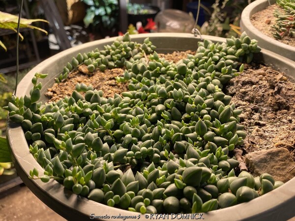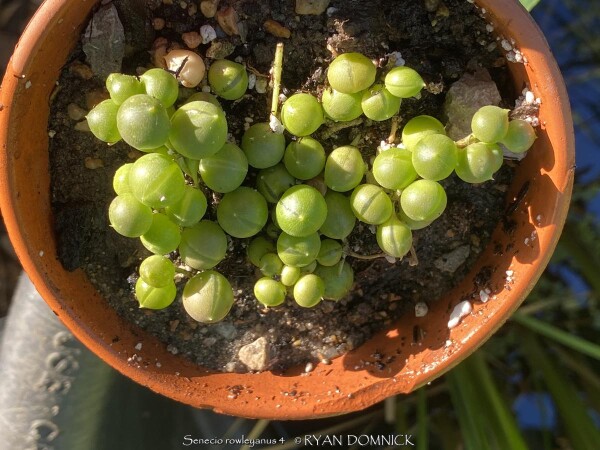 String of Pearls (Senecio / Curio rowleyanus) grows long green stems with interesting sphere-shaped alternating leaves. They are usually grown as a patio or house plant in Kansas. String of Pearls also grow well in hanging baskets as a durable, succulent plant able to survive drying out, heat and dry air like few others! To play is safe, potted plants are best moved in before night temperatures get below 45 degrees F. It is important to avoid the combination of wet and cold. Before extreme cold occurs, move to a bright interior window over the winter with no watering and keep above freezing. As a winter house plant, it will look presentable all winter long with just no waterings. As a permanent house plant, provide bright light and allow the soil to dry between waterings for many years of carefree enjoyment. Generally if moving outside for the summer, allow 1-2 weeks of part shade or morning sun before placing in full sun. Plants with time to acclimate will thrive in full sun but be careful not to rush it or sunburning will occur. Full hot sun over 100 degrees F can also burn the top of the hanging basket killing the stems where they touch the pot rim and dirt. Avoid this by moving into part-shade during the hottest part of the summer. Potted plants are very low maintenance. I have never seen any insect problems on this plant.