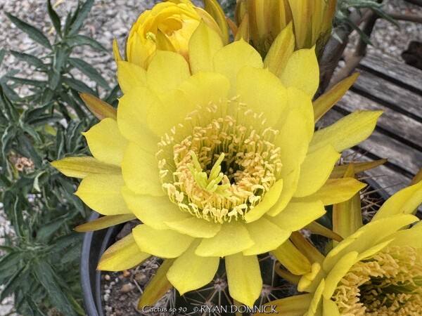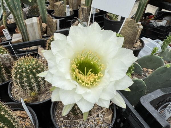 ***Description for this plant available with future update!*** Trichocereus grandiflorus is also known as Torch Cactus (Tropical)>>>>> Cacti are known for their spines, unusual shapes and beautiful flowers. Both succulents and cacti store water in their fleshy tissues. And can survive long periods without water. Cacti and succulents are usually grown as a deck/patio plant or house plant in Kansas. Grow in full sun with little to no extra watering except that which comes from rainfall. Generally, plants may be brought out in Late May through Early October in our zone 6a Lawrence, KS climate. To play is safe, potted plants are best moved in before autumn leaves begin to drop and before night temperatures get below 45 degrees F. It is very important to avoid the combination of wet and cold. Move to a bright interior window over the winter with little to no watering and keep above 50 degrees F. As a winter house plant, it will look presentable all winter long with little to no waterings. As a permanent house plant, provide bright light and allow the soil to dry completely between waterings and you will get many years of carefree enjoyment. Plants grown permanently indoors may eventually begin to elongate stretching for light and lose their spine color. It can be hard to reproduce the intense UV sunlight they need when growing indoors so moving outside for the summer is best. Generally if moving outside for the summer, allow 1-2 weeks of part shade or morning sun before placing in full sun. Plants with time to acclimate will thrive in full sun but be careful not to rush it or sunburning may occur. Repotting may or may not be needed depending on how large you want the plant to grow; plants can continue to grow taller and tolerate extremely root-bound pots but may need wind bracing. If repotting, make sure to use a sharp draining low organic cactus mix with plenty of sand and perlite but avoid peat moss. The “soil” most commercial cacti are potted in to too peaty and light weight. This soil becomes hydrophobic and shrinks after becoming bone dry and difficult to re wet again. Cacti never grow in peat-based soils in nature; this “Soil” is only good for shipping because of the light weight. Potted plants are very low maintenance but watch for scale and mealybugs that may hide beneath the cover of spines. The best pest removal approach is to periodically wash the cactus off. Achieve this with a water nozzle or hose breaker turned mostly off to increase the pressure from the blast of water. This high-pressured water kills the pests without damaging the thick cactus skin. Here are some little-known or rare factoids about cacti: 1. The "spines" are actually modified leaves filled with sap at first, then quickly drying out to form the spines! 2. Many cacti have bright colored flowers that mainly attract bees, while some tubular flowering types attract hummingbirds and bats. 3. Late on the evolutionary timeline, cacti fossils are rare to non-existent. Cacti are native almost exclusively to the Americas, while succulents can include a much larger plant palette be from any dry area in the world. 4. Some cactus plants have been known to survive more than 2 years without water. 5. Some cacti first evolved in a dry climate that later became wetter again. For example: several jungle species live as epiphytes in trees to achieve the fast drainage they need.