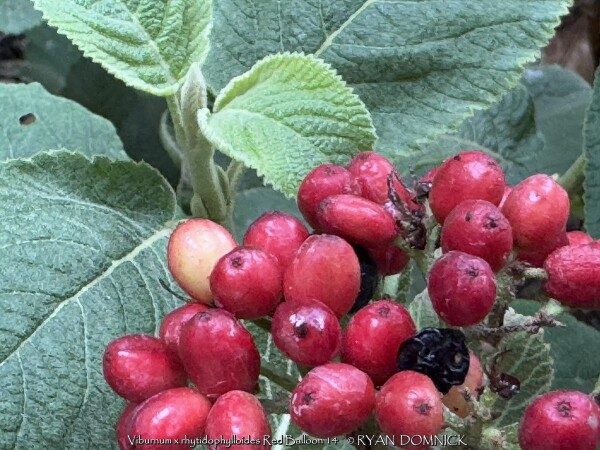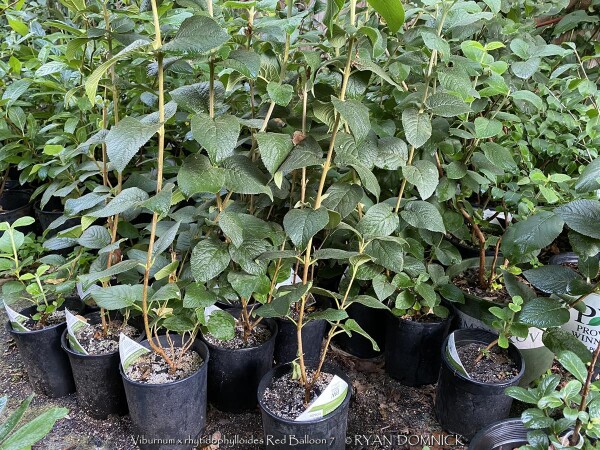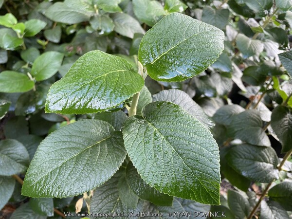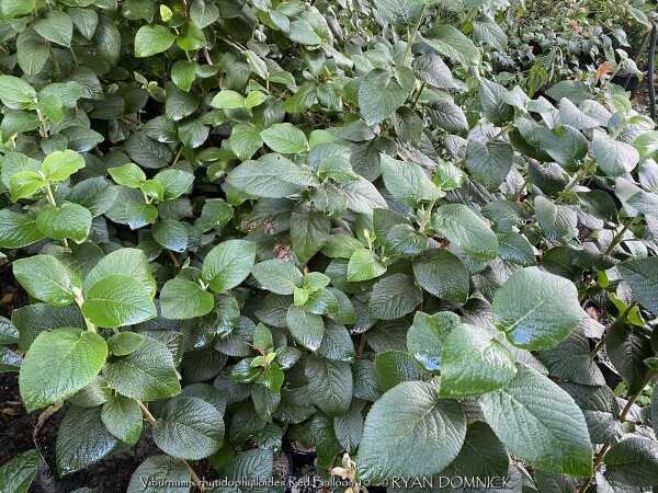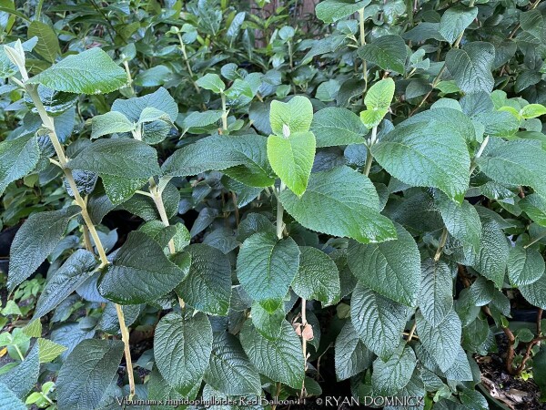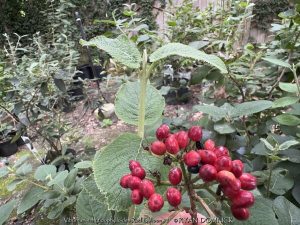 Leatherleaf viburnum is a large semi-evergreen shrub with leathery leaves and cream white flowers. Foliage emerges light green with powdery white material on the backside of the leaf. Foliage darkens to a medium green by summer and finally turning to a purplish winter color. About half of the foliage drops in the winter but is still effective enough for a partial screening. Flowers bloom mostly in spring but sporadically throughout the year. If pollination occurs, red fruits follow in the late summer thru fall creating quite a show. More than one variety is typically required for pollination. Leatherleaf viburnum prefers medium to rich garden soil in full to part sun. Being one of the toughest viburnums around, it can handle much less than ideal conditions including dry shade. Typically our are 40 inches of rainfall per year in eastern Kansas is enough without extra water. However, during times of drought, the foliage will wilt and growth will stop. Luckily the foliage is able to survive in a wilted state for a long time (usually up to two or three weeks) before actually dying. This gives you plenty of notice that it needs water. There is virtually no maintenance except rejuvenation on very old plants. Yearly fertilizer application is appreciated. When given plenty of room to grow, Leatherleaf Viburnum can reach up to 8 or 12 feet tall and wide after 20-30 years. Eventually old canes become unproductive and should be removed allowing young vigorous canes to develop. Leatherleaf viburnum grows slow at first especially in rough soils but the key thing is that it will survive and grow faster when established. Cold hardiness is not a problem in Lawrence Kansas zone 6a but in colder climates expect winterkill down to the ground in some years. Considered one of the best plants for solving your most difficult dry-shade landscape challenges. Several improved cultivars exist. Red Balloon Leatherleaf Viburnum (Viburnum x rhytidophylloides 'Red Balloon') features significant improvements. In spring, large, lacy white flower clusters cover the plant, followed by green fruit which turns brilliant red in late summer. The thick, leathery foliage lends a distinguished, handsome look to the plant all season. This viburnum will develop some berries without another variety as a pollinator, but you'll get more fruit if planted around 'Mohican' or 'Alleghany.' Proven Winners® plants are legally propagated, healthy and vigorous, true to name, and tagged with color pictures and growing information.